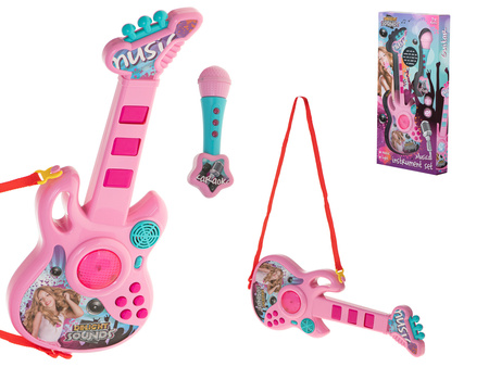 - Niezwykła, różowa gitara elektryczna dla dzieci w zestawie z mikrofonem sprawi, że Twoja mała pociecha poczuje się jak prawdziwa gwiazda rocka. Dla dzieci od lat 3.