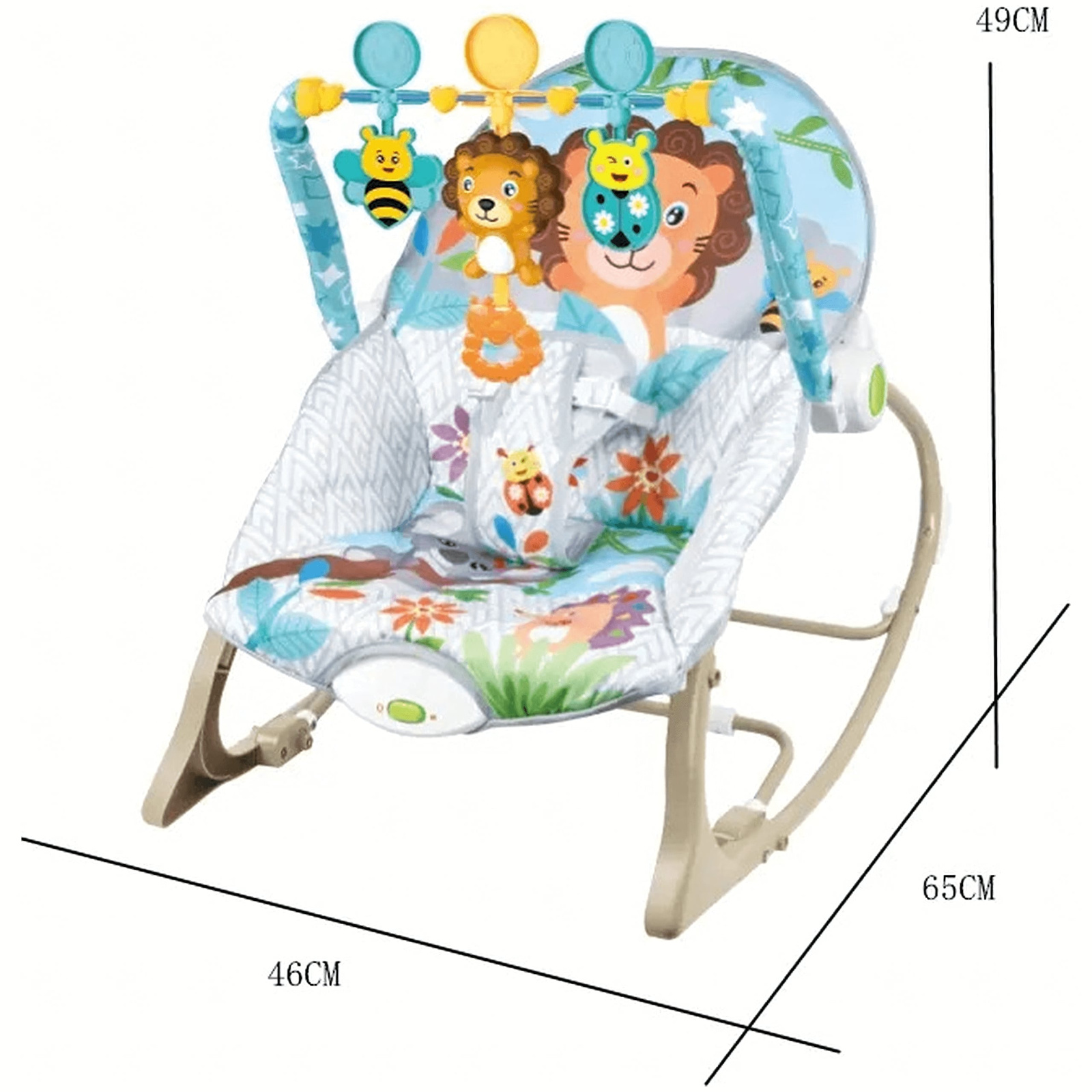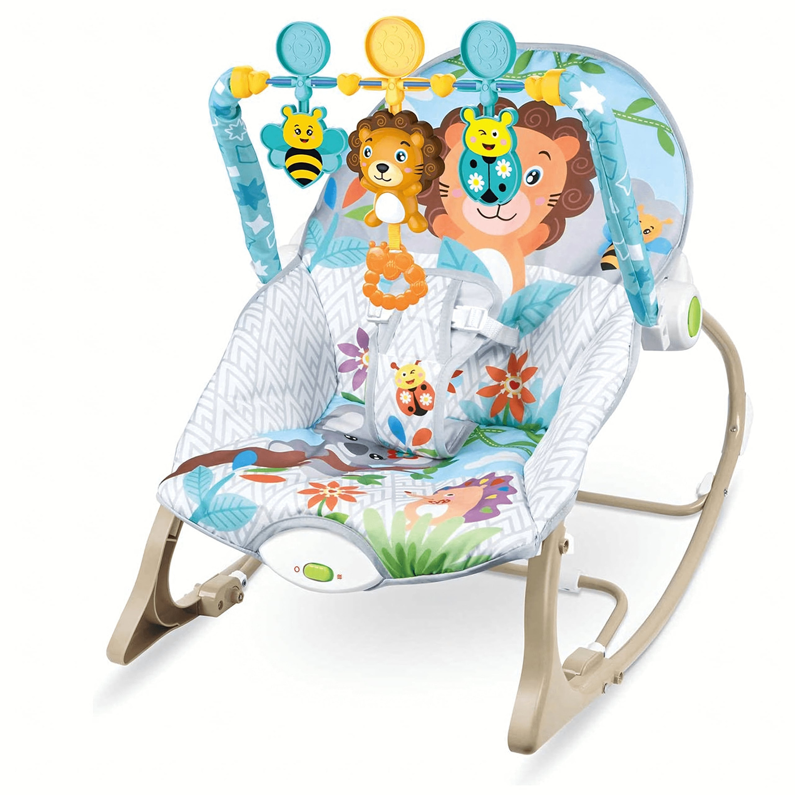 Leżaczek bujaczek dla niemowląt dzieci lew wibracje grzechotki niebieski