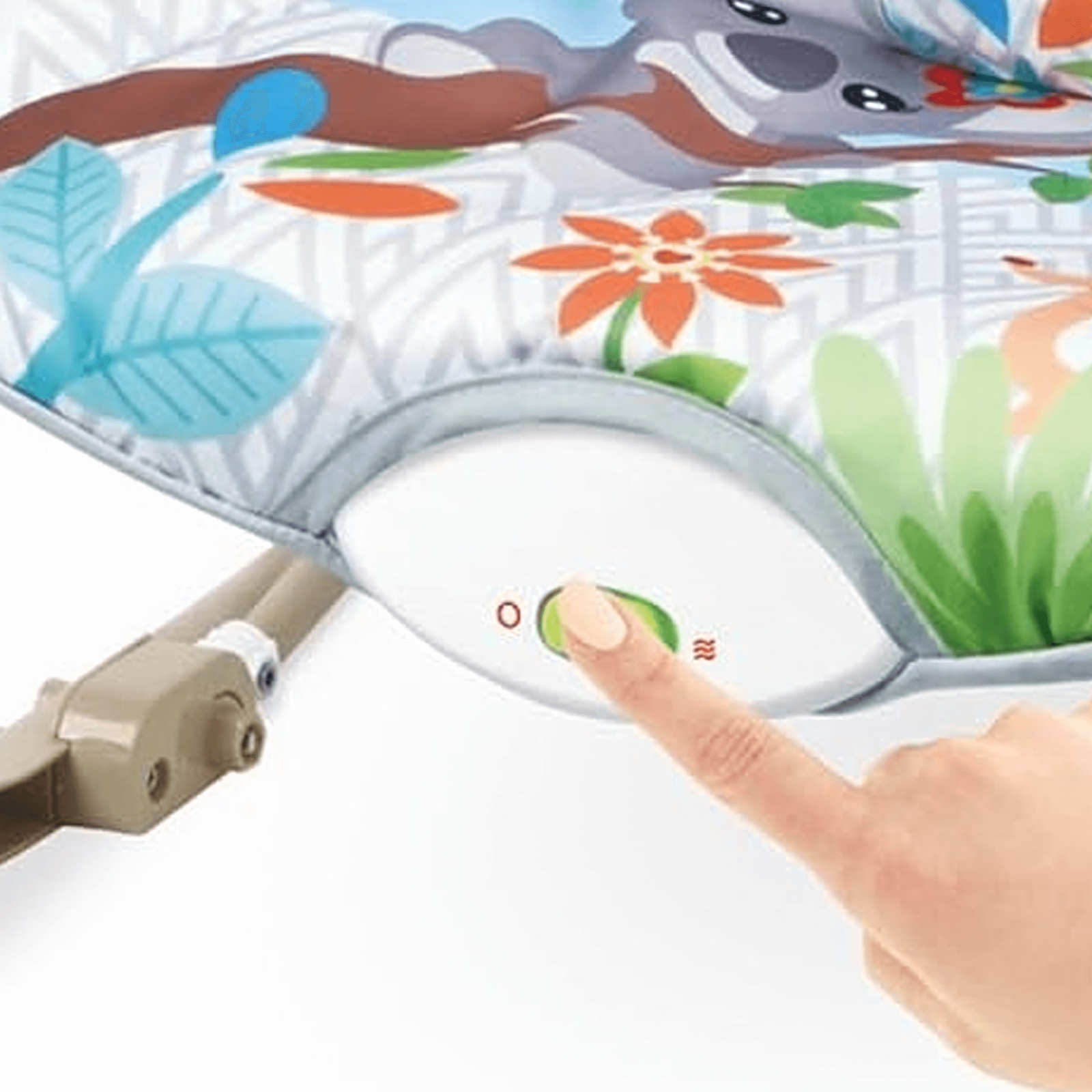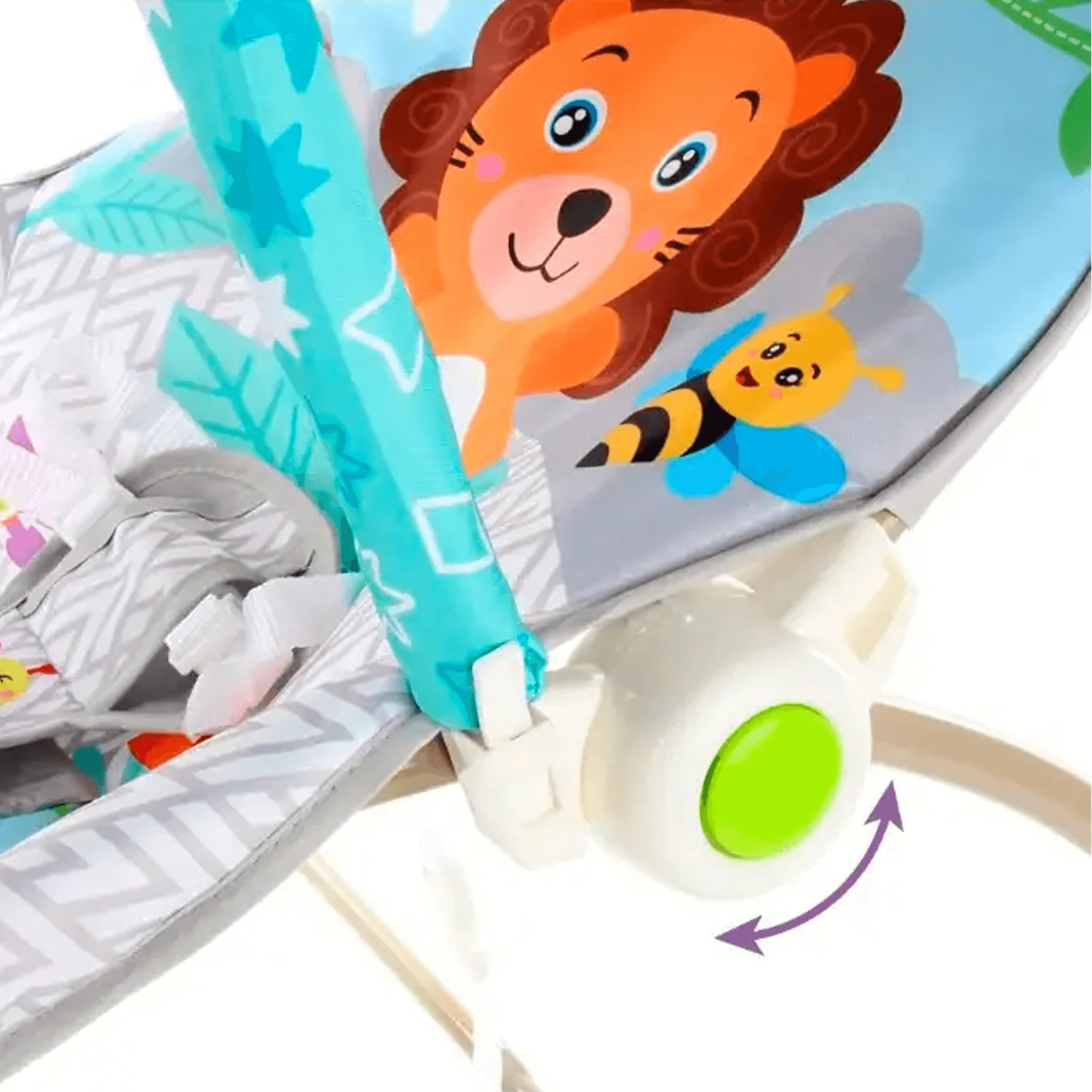 Leżaczek bujaczek dla dzieci, czyli miejsce wsparcia rodzica od pierwszych dni życia maluszka. Posiada wbudowane funkcje uspokajających wibracji oraz delikatnych melodii. Delikatne wibracje pomagają uspokoić dziecko, wspierają wyciszenie oraz ułatwiają zasypianie. Ponadto, przyjemne melodyjki rozwijają słuch oraz pobudzają zmysły, czym również wprowadzają w relaksujący i dobry nastrój. Oparcie posiada regulację – 2 poziomy.