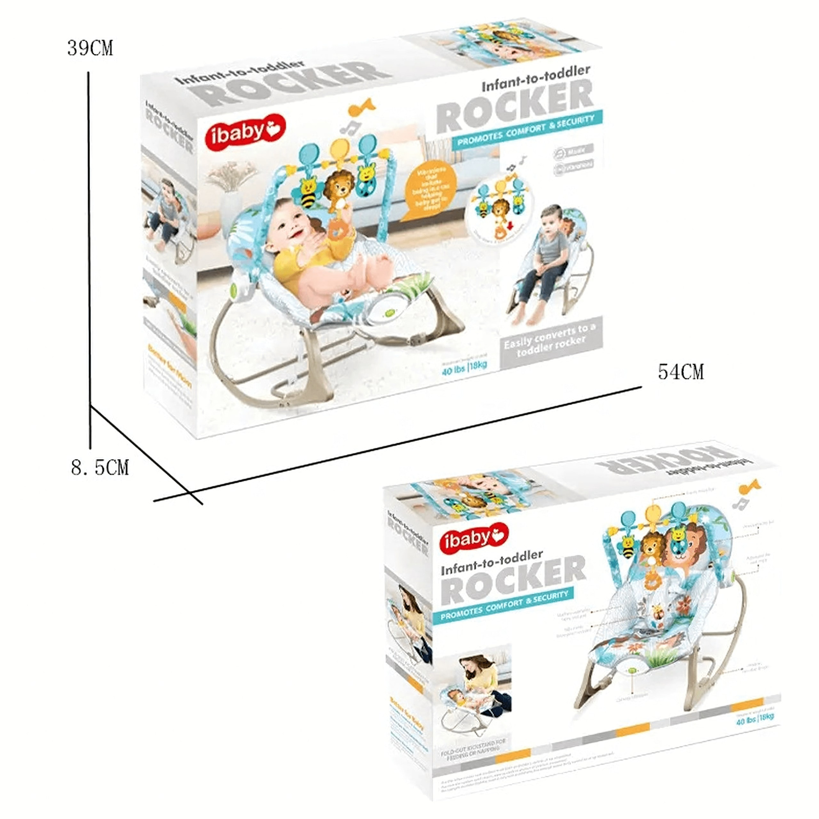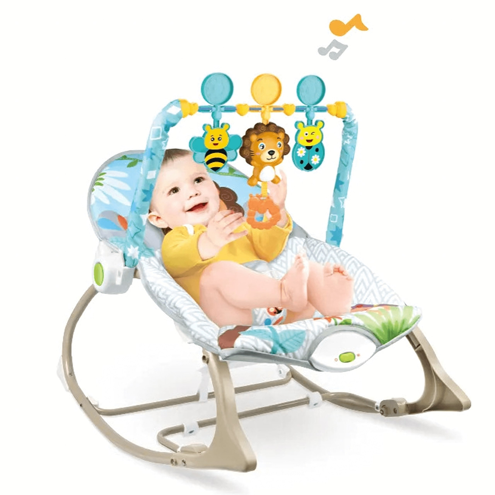 - Leżaczek bujaczek niebieski dla dzieci z wibracjami oraz melodiami. Kolorystyka niebieska, w zestawie znajdują się zawieszki. Maksymalne obciążenie 18 kg.