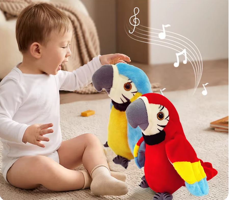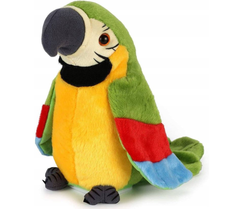 - Zabawka papuga na baterie Ara, która powtarza zasłyszane słowa, może stać się niesamowitym towarzyszem do zabawy. Posiada zieloną kolorystykę oraz przyjemny w dotyku materiał. Przeznaczona dla dzieci powyżej 3 roku życia.
