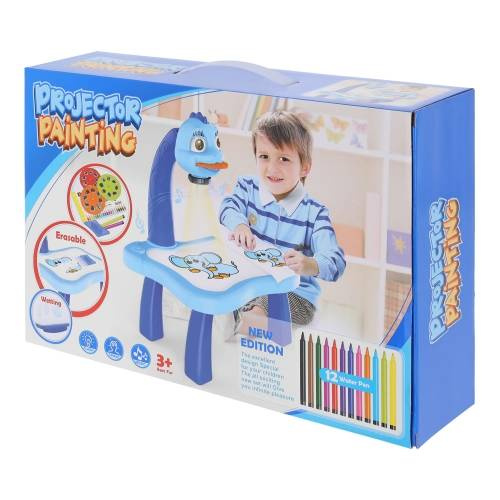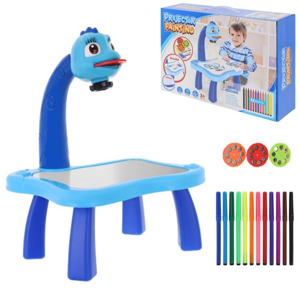 Projektor rzutnik do nauki rysowania dla dzieci 24 wzory stoliczek pisaki niebieski