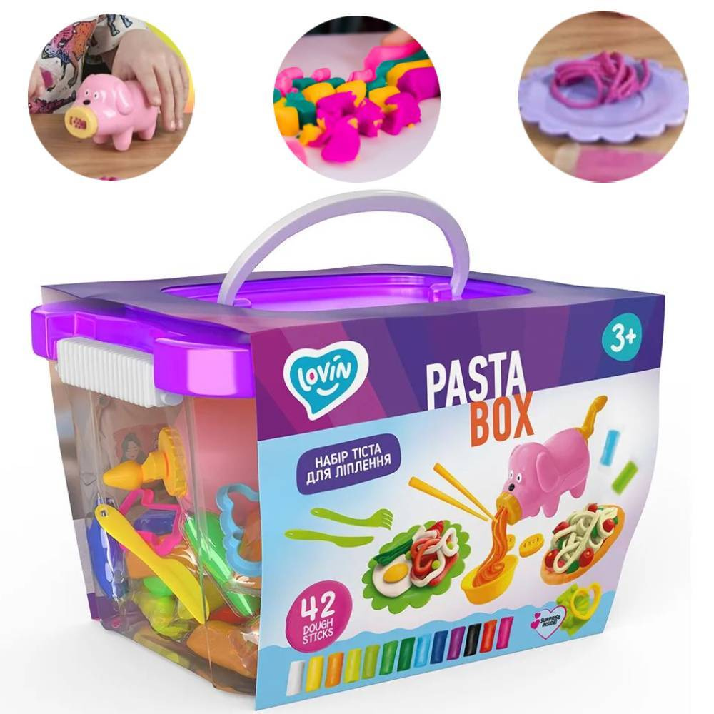 - Zestaw składa się z 42 sztuk modeliny oraz maszynki do robienia makaronu. Zabawa wpłynie pozytywnie na rozwój zdolności manualnych oraz kreatywność. Dla dzieci od 3 roku życia.