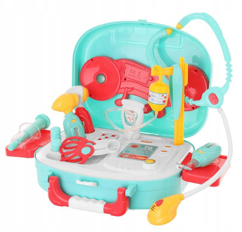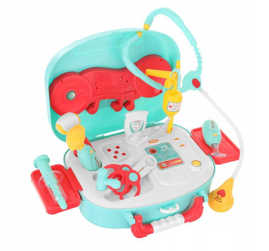 Dzieci uwielbiają wcielać się w różne role, np. superbohaterów lub różnych zawodów. W tym przypadku maluch może stać się lekarzem i stawiać diagnozy swoim misiom, koleżankom oraz rodzicom. Z pewnością wymyślanie nazwy choroby oraz metody leczenia rozwinie kreatywność dziecka. Zabawkowy zestaw lekarski pozwoli dziecku zapoznać się ze sprzętem używanym w prawdziwych gabinetach, dzięki czemu następna wizyta lekarska może nie być już taka straszna.ZESTAW LEKARSKI – WALIZKA Z AKCESORIAMI