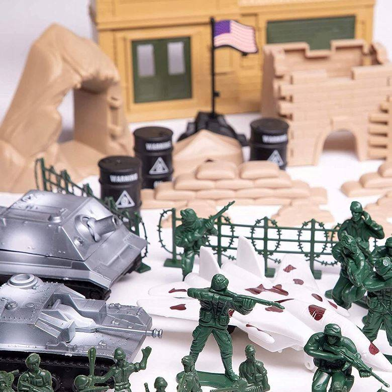 - Duży zestaw wojskowy idealny dla małego stratega i generała. Znajdują się w nim żołnierzyki w dwóch wielkościach, bazy oraz inne elementy potrzebne na polu bitwy. Zestaw składa się z aż 300 elementów.