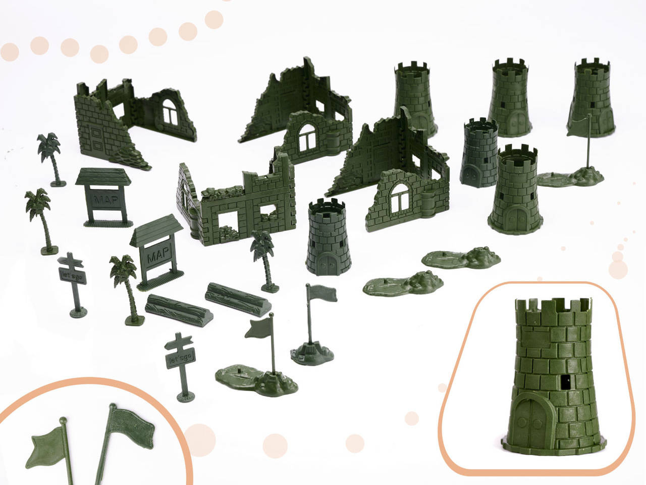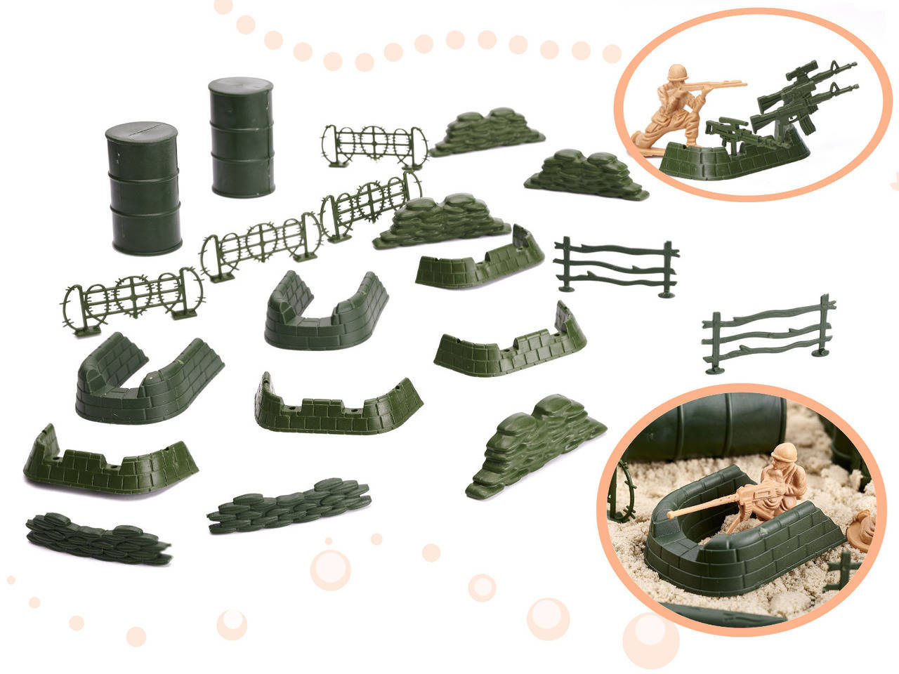 - 114 elementów w zestawie: żołnierzyki, forty, broń, dodatki