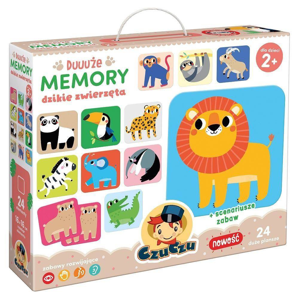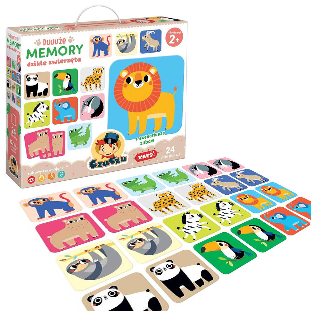Podstawowa gra memeory polega na odkrywaniu kafelek parami i szukaniu obrazków pasujących do siebie. Duuuże memory świetnie nadaje się dla dzieci już od drugiego roku życia. Kafelki ze zwierzętami można wykorzystać do zabawy na wiele różnych sposobów. Kilka z nich znajdziemy w załączonych do zestawu scenariuszach zabaw.MEMEORY ZE ZWIERZĘTAMI ROZWIJAJĄCA GRA DLA NAJMŁODSZYCH
