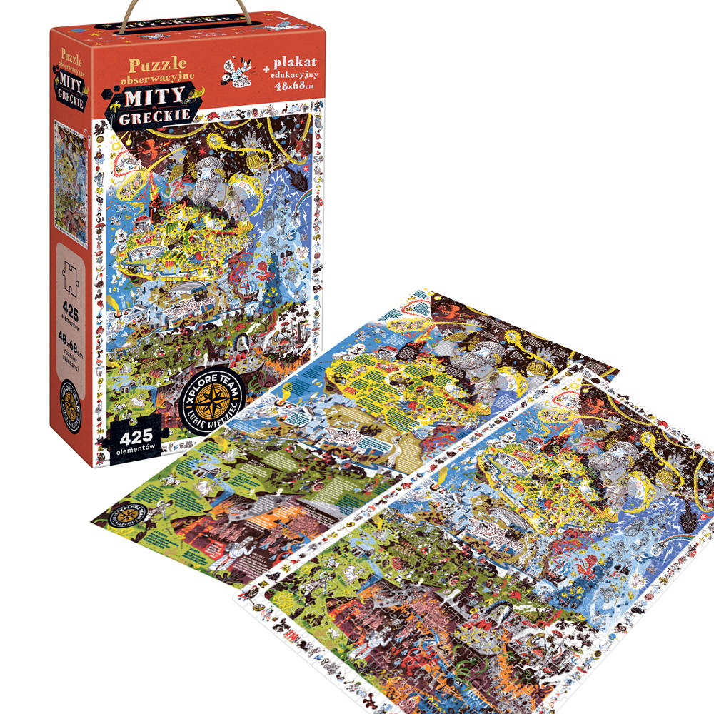 - Wejdź do świata bogów i herosów! Układając puzzle obserwacyjne poznasz wierzenia starożytnych Greków. Do puzzli załączony jest dwustronny plakat edukacyjny zawierający wiele przydatnych informacji i ciekawostek.