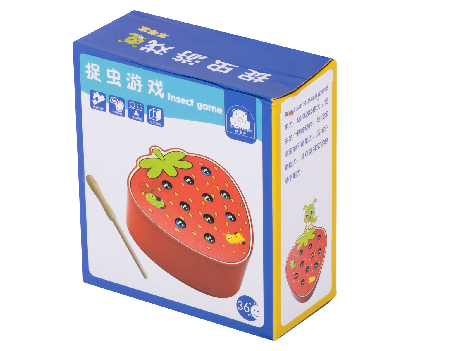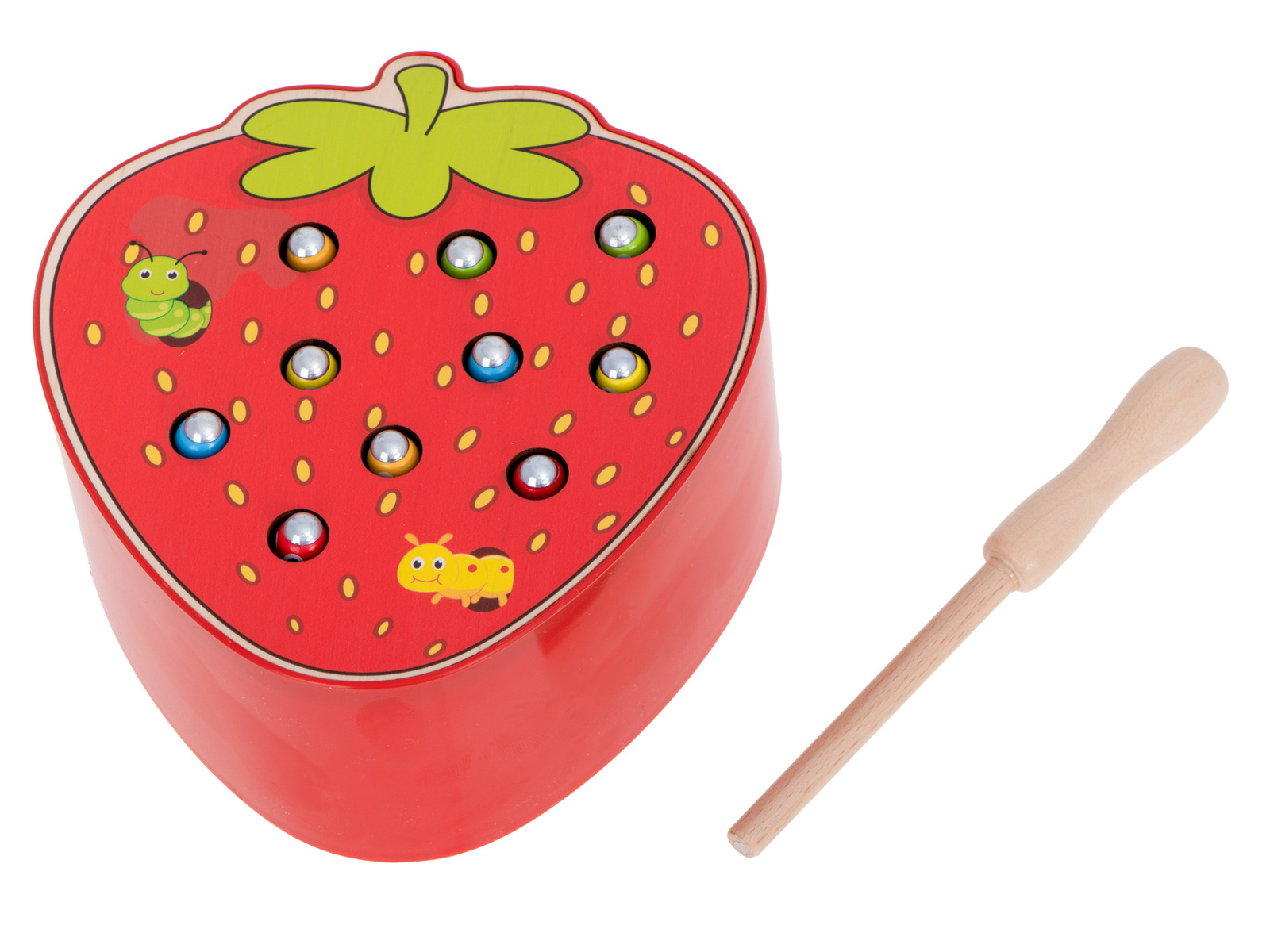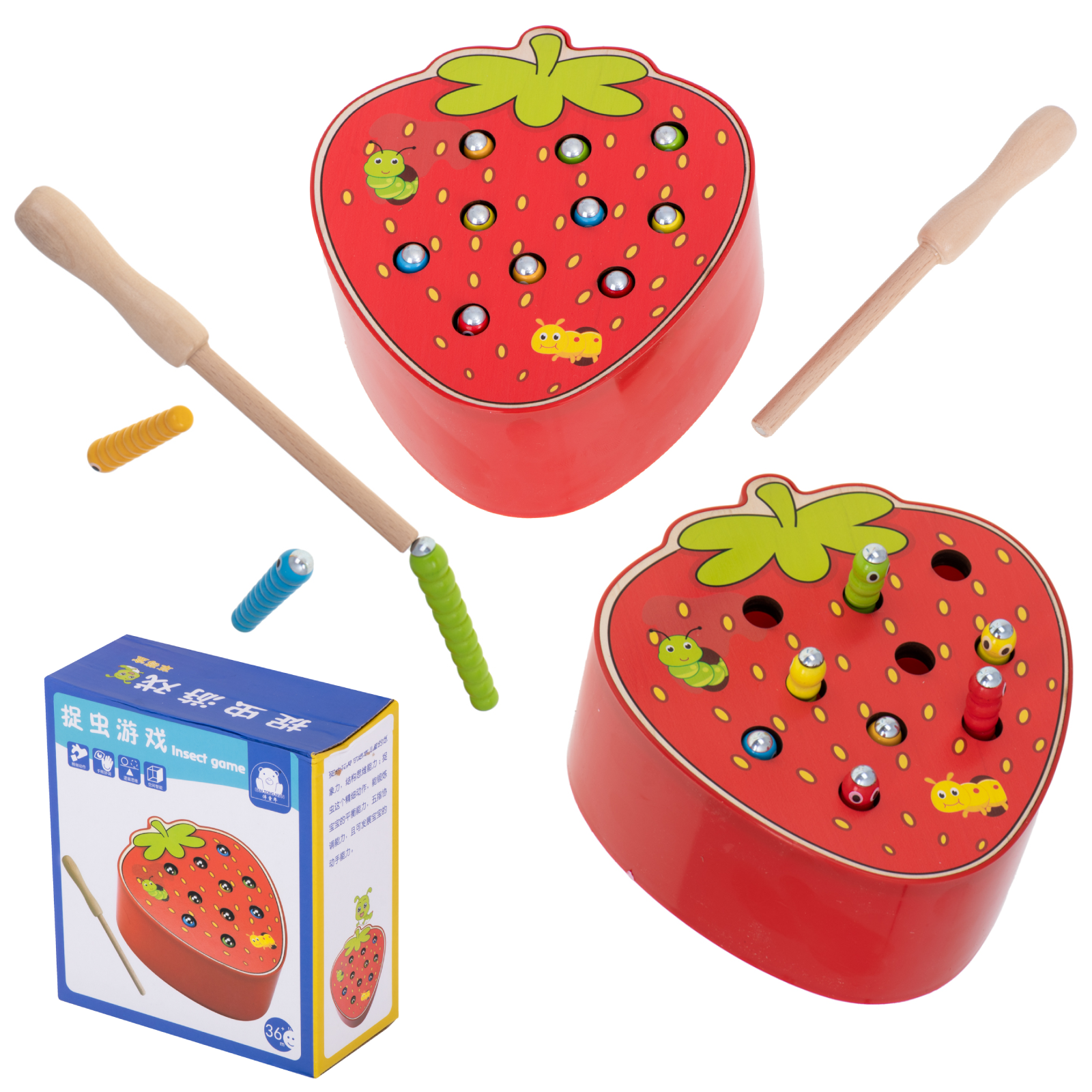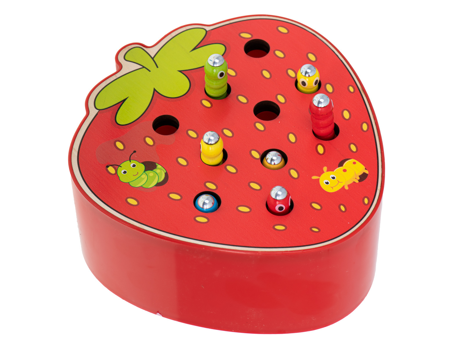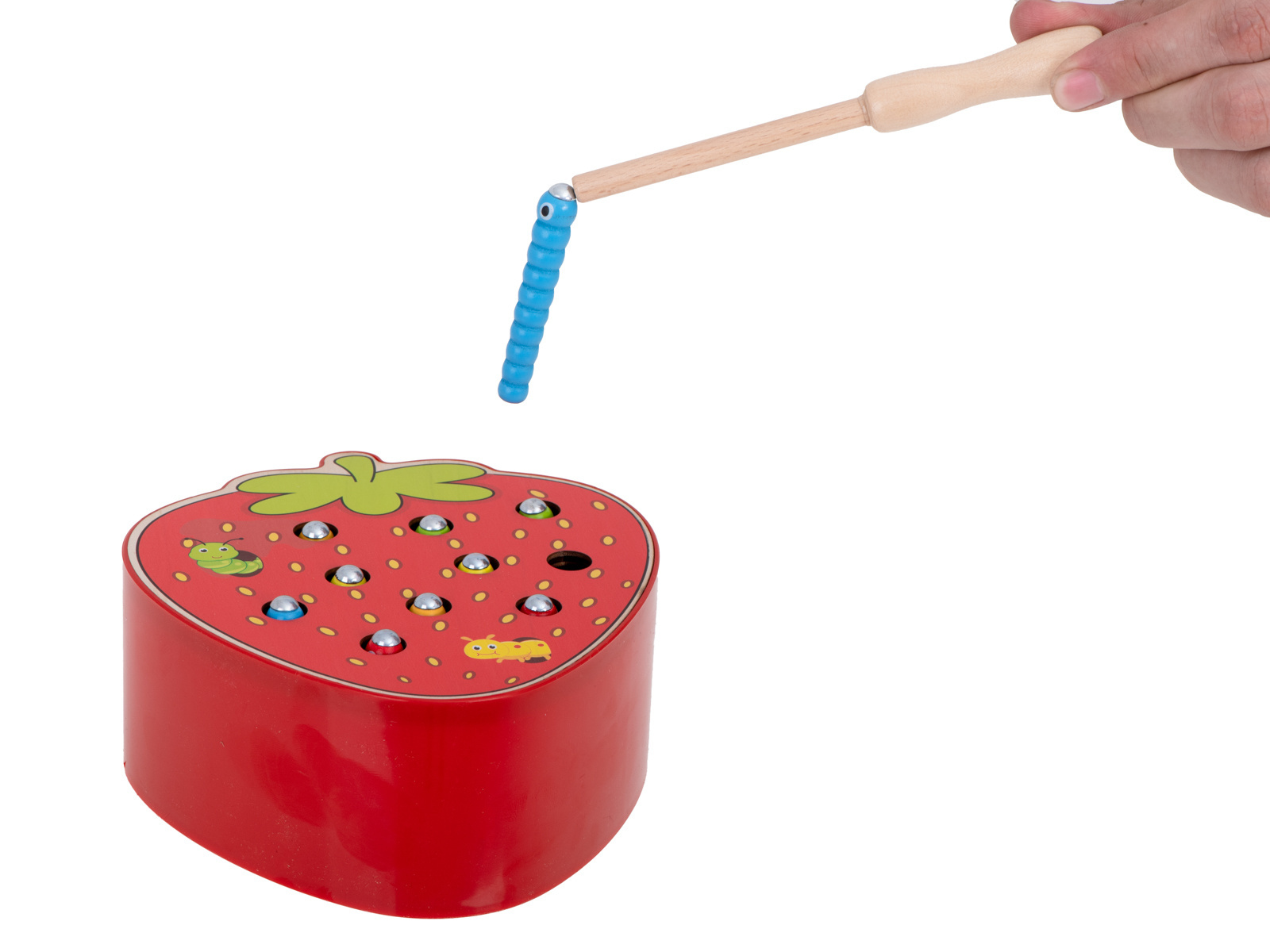- Zabawna gra edukacyjna dla dzieci w łowienie gąsienic z otworów w drewnianej truskawce na pewno przyniesie Twoim maluchom mnóstwo frajdy, tym bardziej, że wędka posiada magnetyczne właściwości. Zabawka przeznaczona dla dzieci powyżej 3 roku życia.