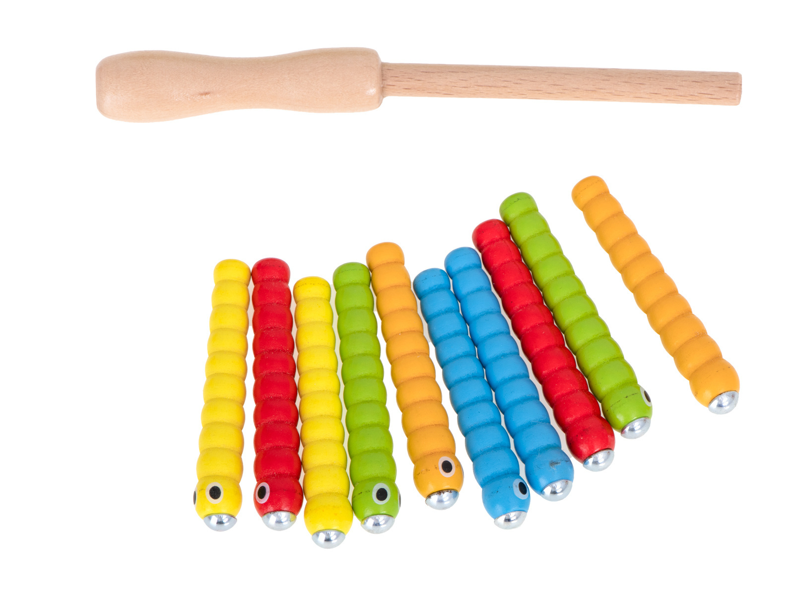 - 10 drewnianych gąsienic zakończonych magnesami z różdżką w zestawie