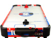 Wspaniała gra zręcznościowa dla każdego! Zabawa jest bardzo emocjonująca oraz pozwala na zdrową rywalizację. Aby zdobyć punkt należy trafić krążek do bramki przeciwnika. Na powierzchni stołu znajdują się otwory przez które wydmuchiwane jest powietrze. Dzięki temu powstaje poduszka powietrzna, na której ślizga się krążek bez kontaktu ze stołem. Ilość punktów można liczyć na umieszczonym z boku stołu liczniku.DANE TECHNICZNE