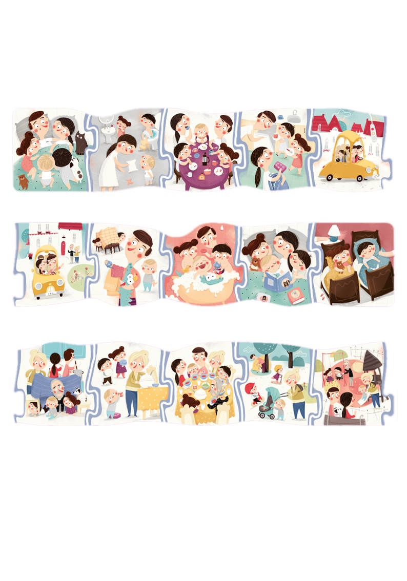 Pucio to sympatyczny kilkulatek, bohater serii książeczek i innych pomocy dydaktycznych z którym dzieci wkraczają w świat mówienia i czytania. Pudełko zawiera 15 kawałków puzzli przedstawiających fragment jednego dnia w rodzinie Pucia.Po ułożeniu wszystkich kawałków otrzymamy długi obrazek zdarzeń jakie mają miejsce w sobotę w domu Pucia. Do zestawu załączona jest przykładowa historyjka jaką możemy wykorzystać opowiadając zdarzenia z obrazków.