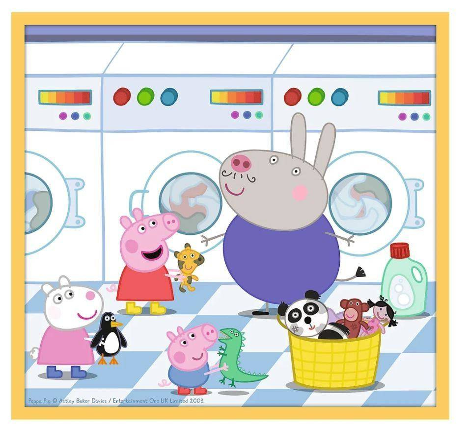 - Zwstaw 10 osobnych obrazków do ułożenia z 20, 35 lub 48 kawałków puzzli . Obrazki z bohaterami kreskówki Świnka Peppa