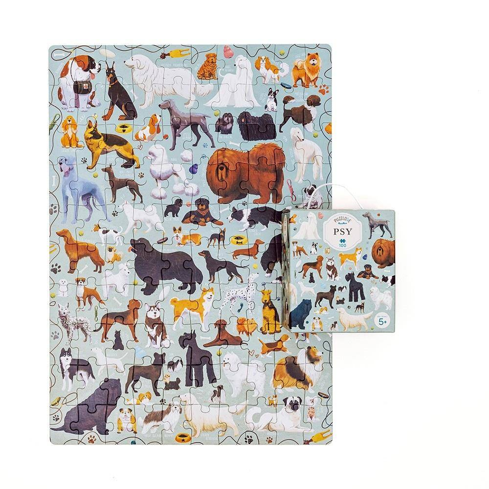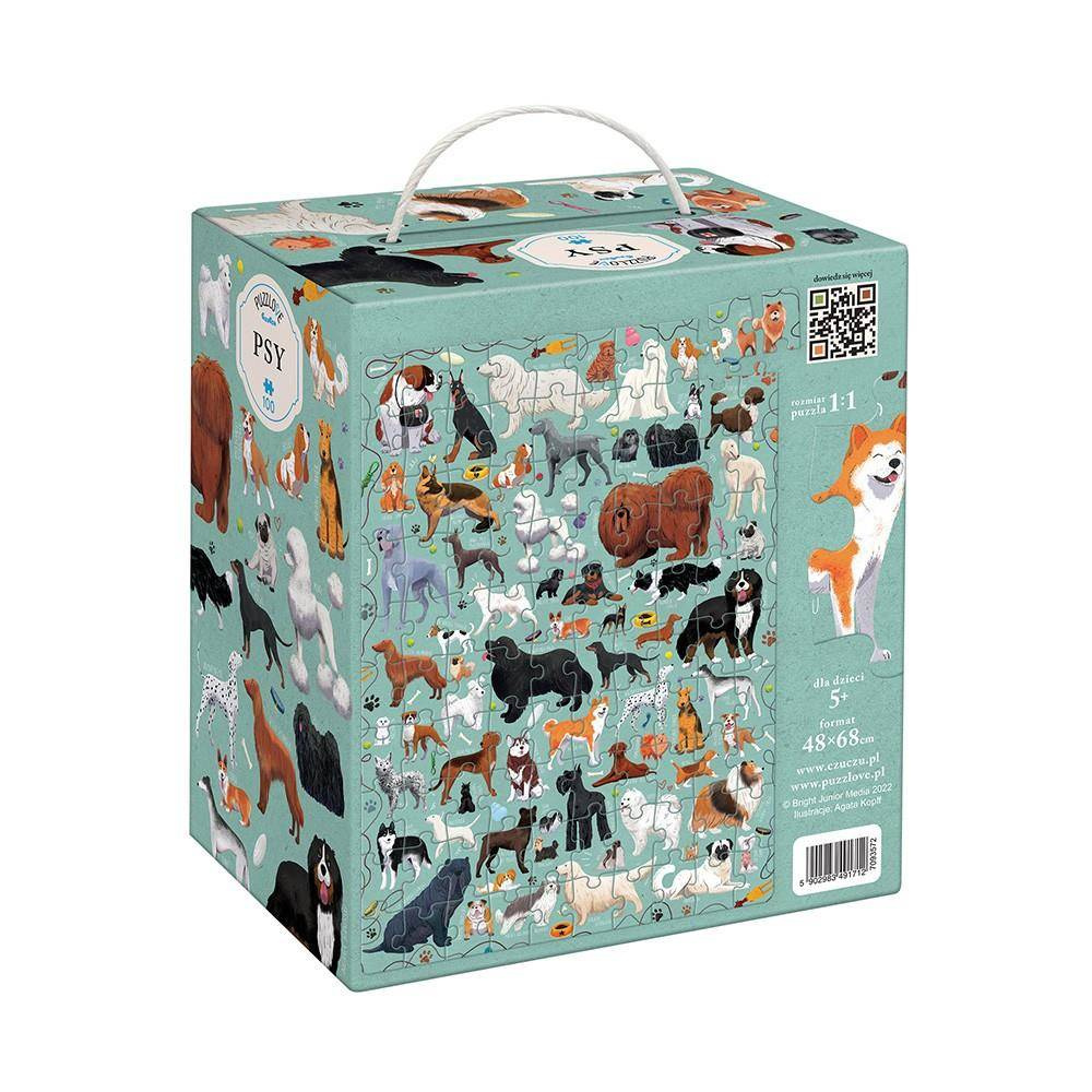 • Zestaw 100 puzzli, które po ułożeniu będą przedstawiać różne rasy psów. Idealne dla miłośników puzzli, przyrody i psiarzy. Po ułożeniu można zapoznać się z wyglądem i nazewnictwem psów. Dla dzieci od 5 lat.