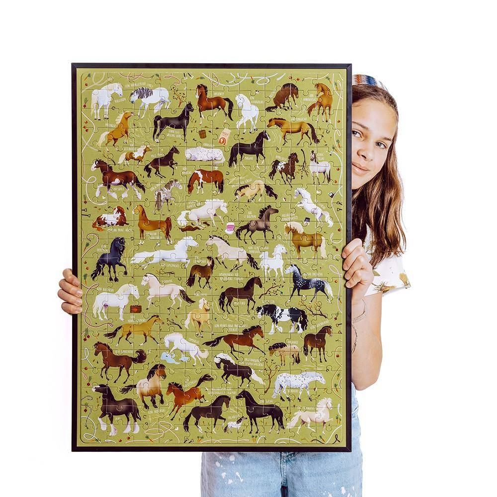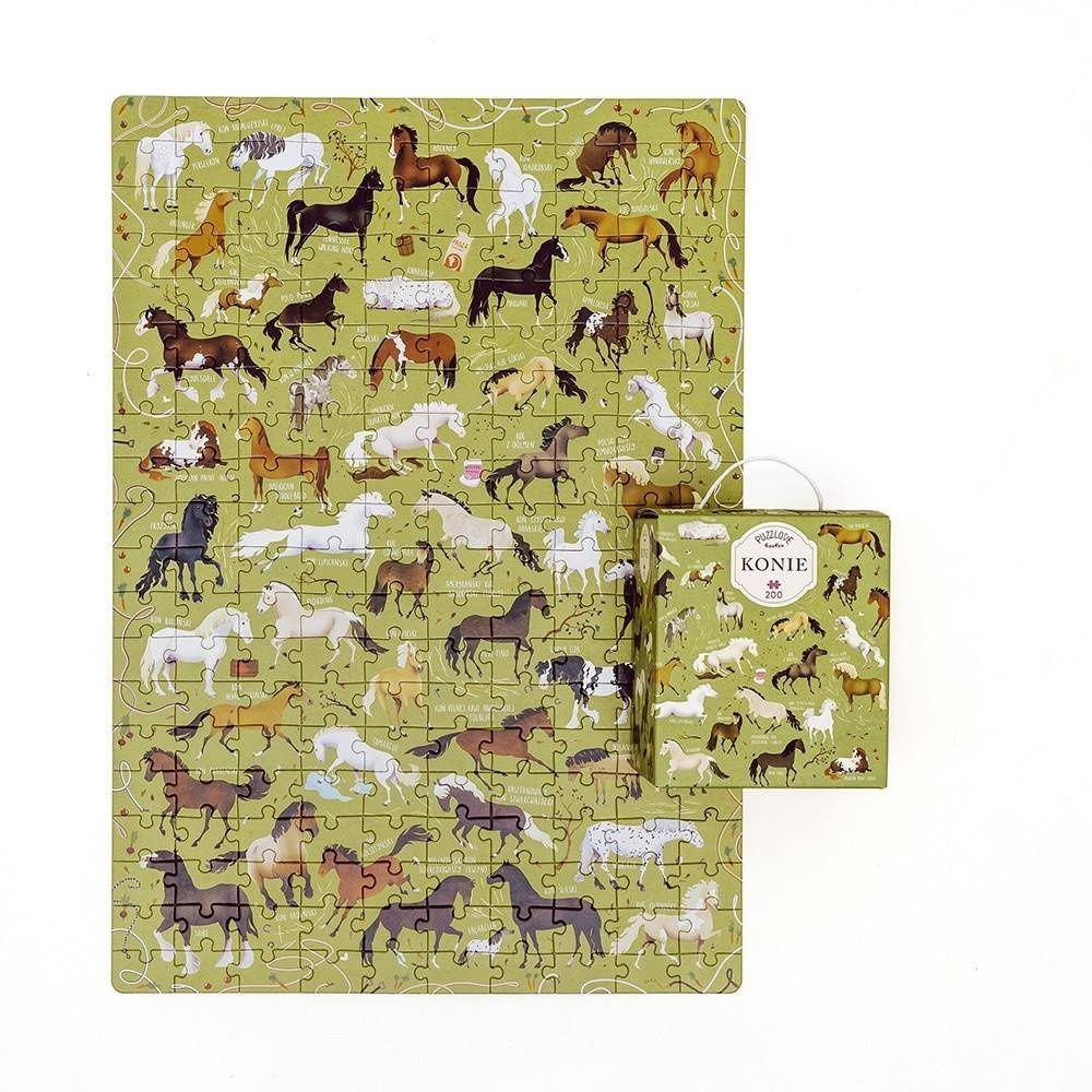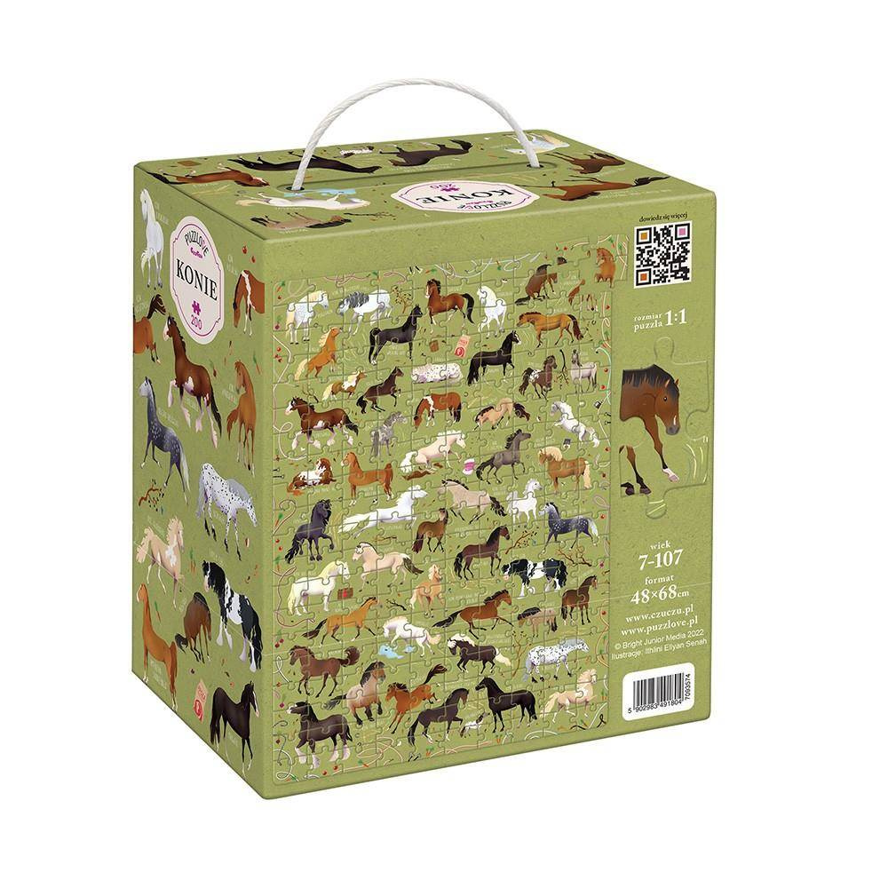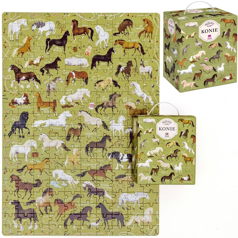 - Duży zestaw 200 puzzli, które po ułożeniu będą przedstawiać konie różnych ras z ich nazwami. Idealne dla miłośników puzzli, przyrody i koniarzy. Puzzle pozwalają na zapoznanie się z wyglądem koni i ich nazwami. Dla dzieci od 7 lat.