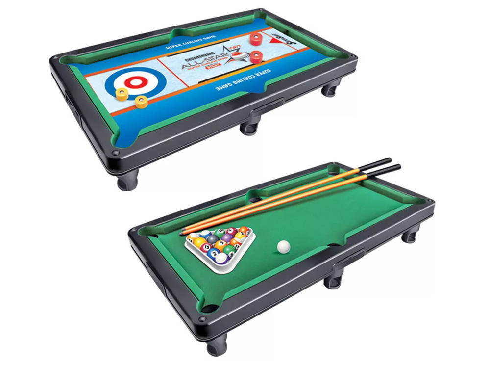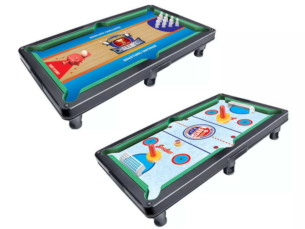 - Zestaw składa się z 6 gier zręcznościowych, tj: golf, koszykówka, hokej, curling, bilard oraz kręgle. Podczas zabawy dziecko rozwinie precyzję oraz nauczy się zdrowej rywalizacji. Dla dzieci powyżej 4 roku życia.