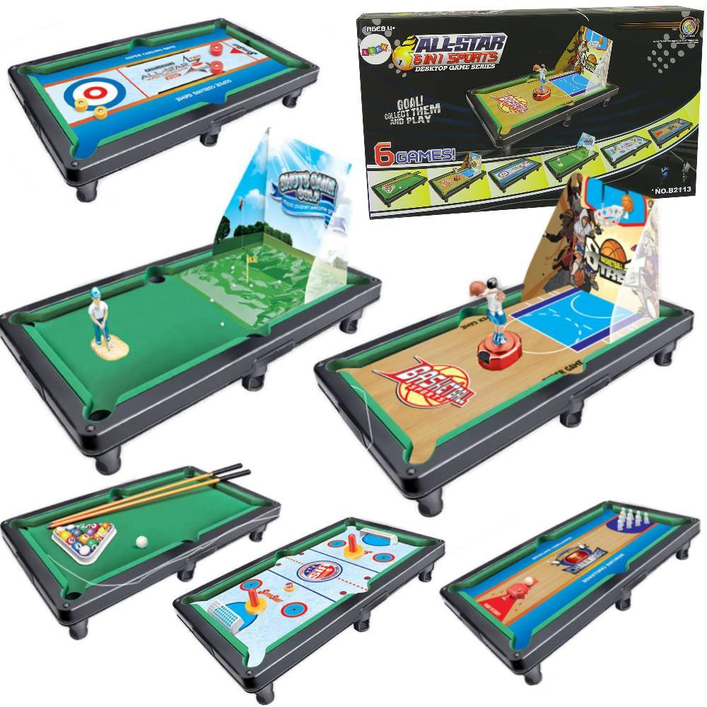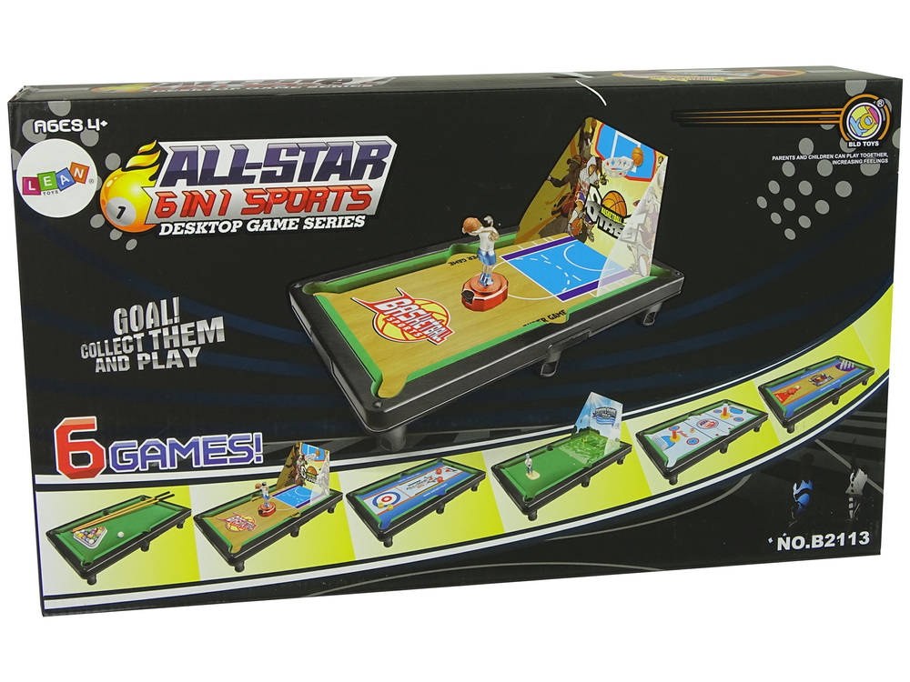 Zestaw gier zręcznościowych sportowych dla dzieci 6 gier kręgle bilard koszykówka