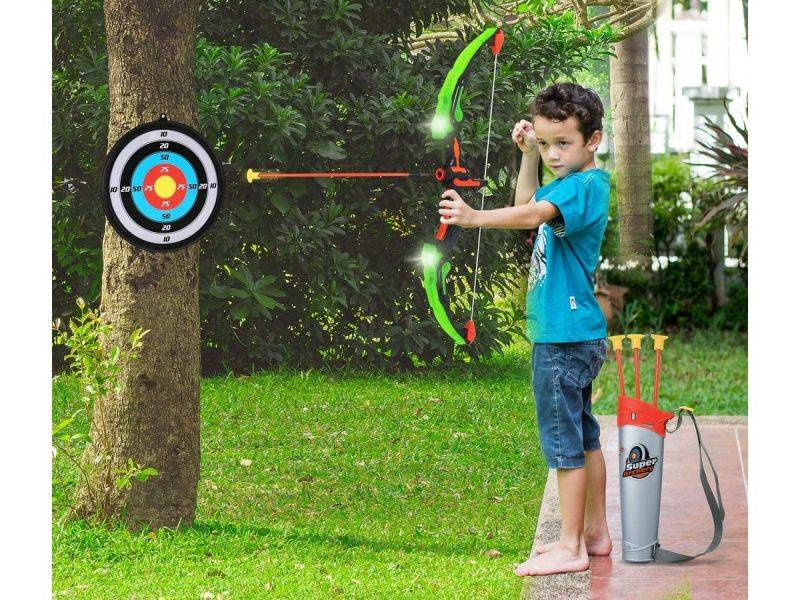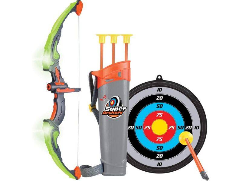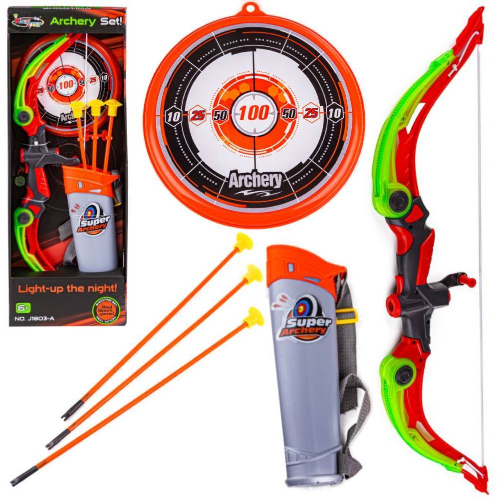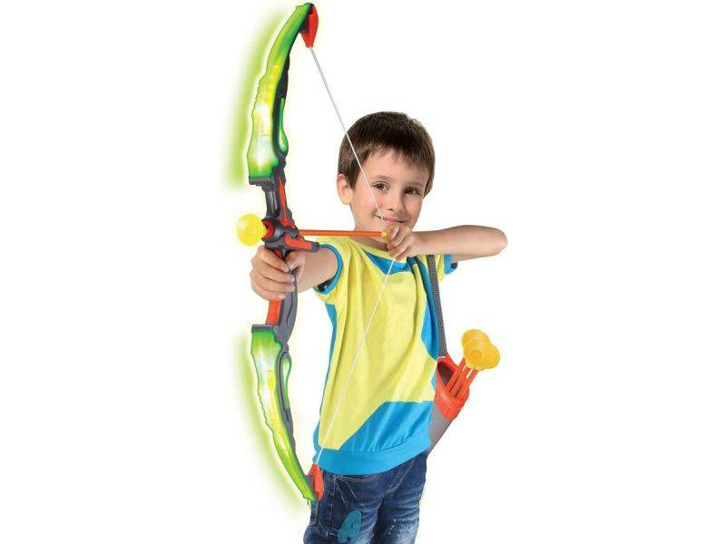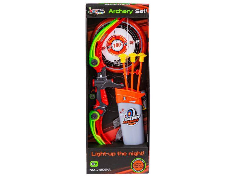- Zestaw strzelecki, który pozwoli na ćwiczenie koncentracji oraz celu. Składa się z łuku, tarczy, kołczana oraz 3 strzał z przyssawkami. Dużym atutem są efekty świetlne łuku. Zabawka przeznaczona dla dzieci powyżej 6 roku życia.