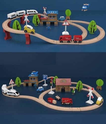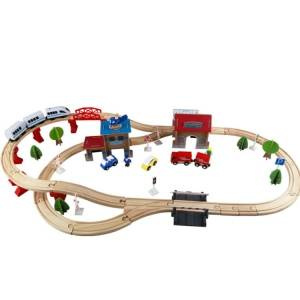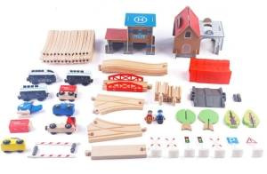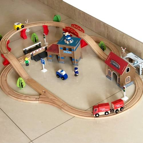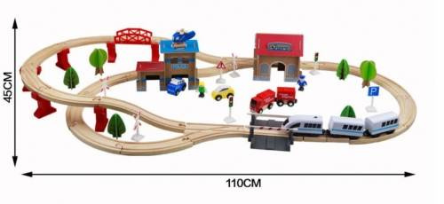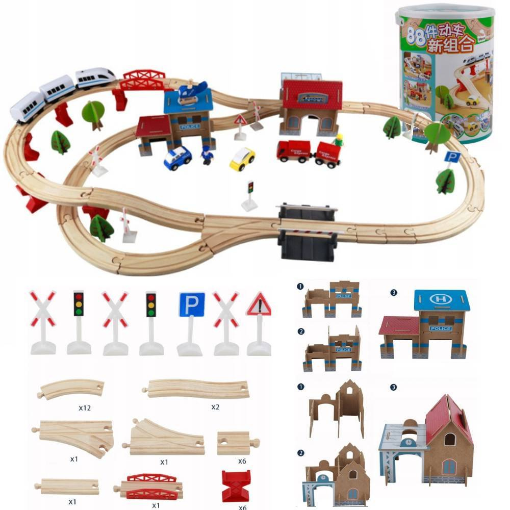Drewniana kolejka pociąg na baterię dla dzieci 88 elementów