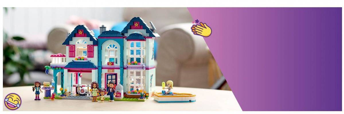 Ten nowoczesny dom wyposażony jest też w panele słoneczne zamocowane na dachu domu a w ogrodzie ma basen w kształcie serca w którym przyjemnie będzie się pluskać w słoneczny dzień. Dzięki przejrzystej instrukcji budowanie nie sprawi kłopotu nawet początkującym budowniczym. Gdy już dom jest gotowy zaproś do zabawy przyjaciół i bawcie się dobrze! Zestaw łączy się z innymi zestawami klocków Lego i serii Lego Friends.- Oapkowanie zawiera 802 elementy w tym 5 figurek