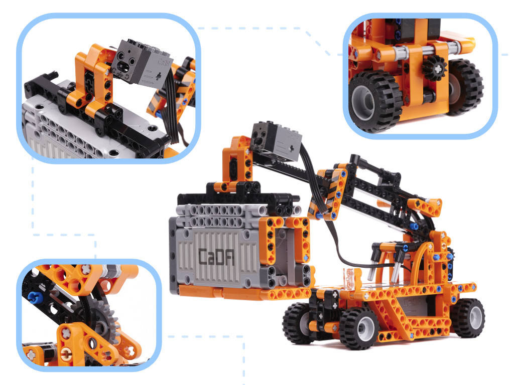 Zestaw jest tym bardziej ciekawy, ze posiada mechanizm napędowy zasilany akumulatorem. Pozwala to na sterowanie każdym z pojazdów w jakim go zamontujemy. Akumulator ładujemy za pomocą dołączonej do zestawu ładowarki. Prędkość jaką może osiągnąć pojazd dochodzi do 2,5 km/hKlocki są doskonałym sposobem na zachęcenie dziecka do rozwiania wyobraźni przestrzennej, logicznego myślenia oraz pobudzają wyobraźnię. Dodatkowo układanie modeli wpłynie pozytywnie na rozwój zdolności manualnych i poprawienie motoryki małej.