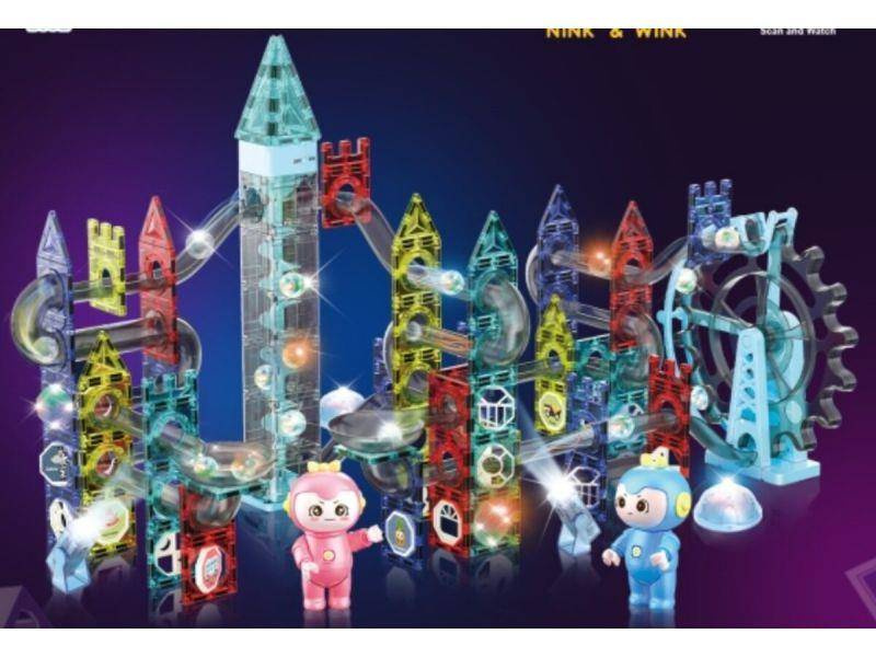Zestaw klocków magnetycznych świecący tor kulkowy dla dzieci kulodrom 230 elementów