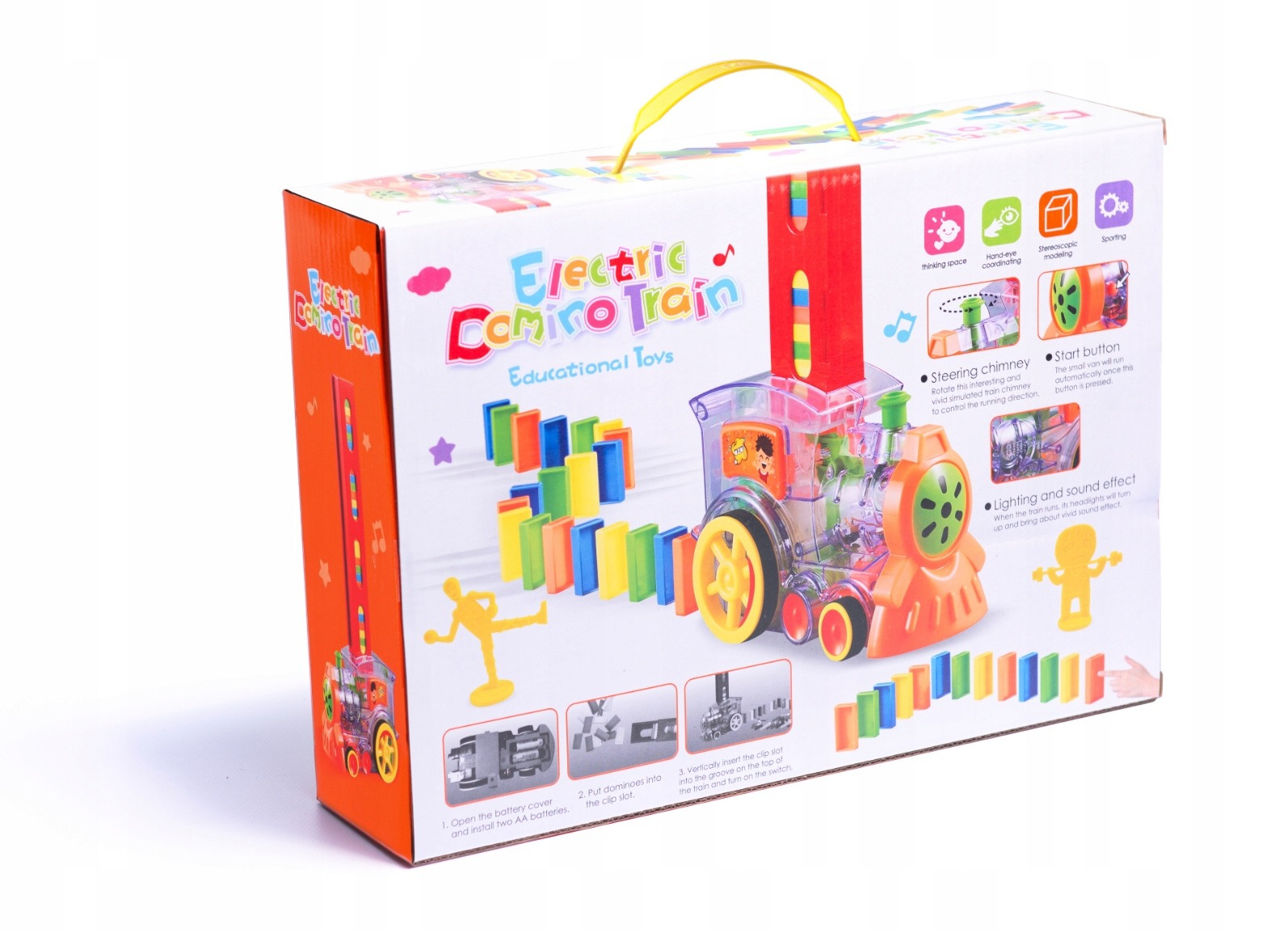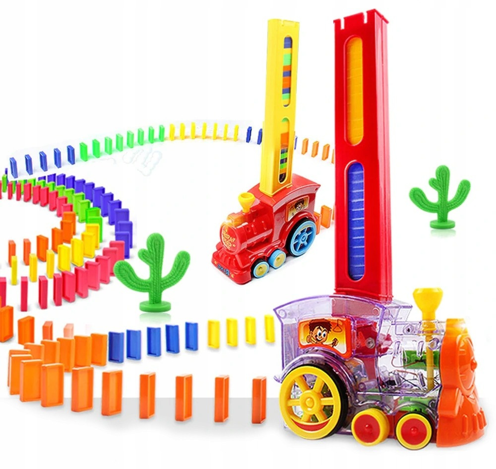 Zabawkowa, interaktywna kolejka z klockami Domino i dźwiękami dla dzieci. Zabawka wspiera poprawny rozwój Twojego dziecka, pobudza jego wyobraźnię oraz logiczne myślenie. Dla dzieci od lat 3.