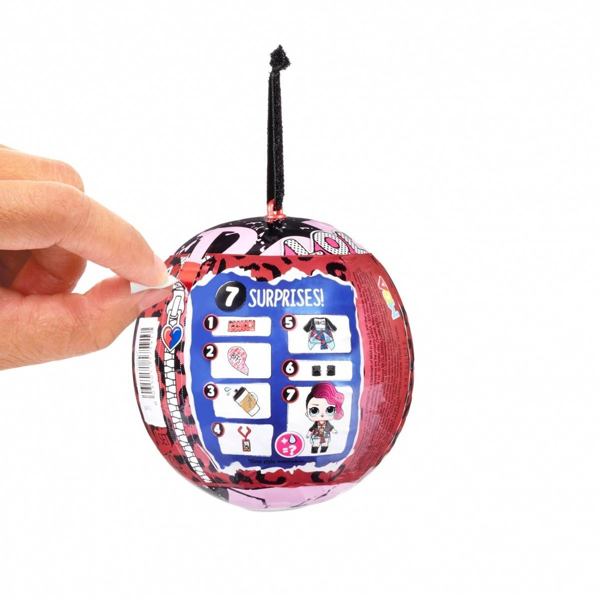 - W środku tajemniczej kuli znajdziesz różową piękną laleczkę L.O.L. Surprise! Rocker. Wraz z nią odkryjesz 7 różnych niespodzianek .