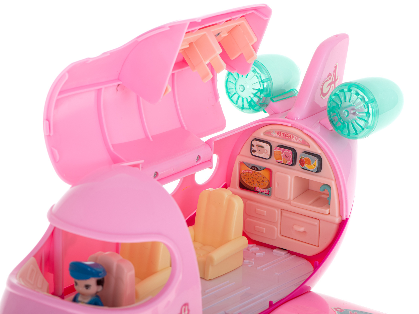 Samolot transportowiec to wyjątkowa zabawka dla dziewczynek zaprojektowana z bardzo dużą dbałością o szczegóły. Samolot można otworzyć, by usadowić figurki na krzesełkach lub za sterami oraz korzystać z uroków podróży. Wielki wózek na przekąski zapewnia dodatkowe atrakcje i przedłuża czas całego lotu. Do zestawu dołączone zostały również mebelki, dzięki którym zabawa stanie się jeszcze przyjemniejsza.SKŁAD ZESTAWU:A