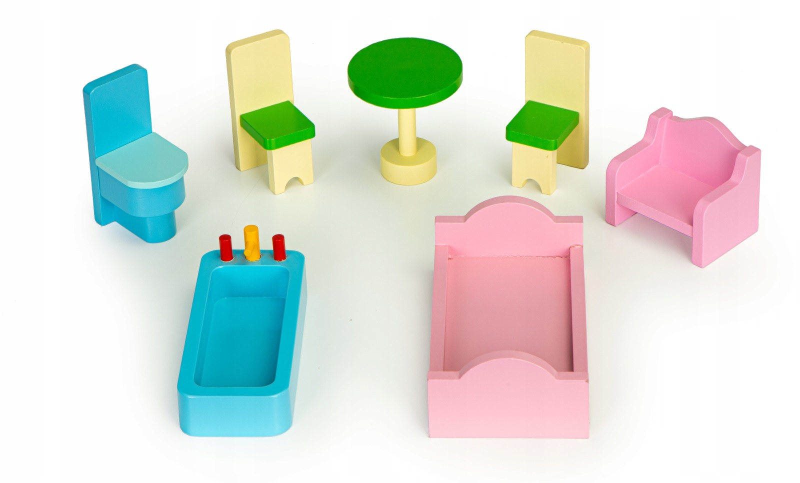 Spełnij marzenie każdej dziewczynki, podaruj swojej córce wysoki, kolorowy, wykonany z drewniana domek dla lalek. Całkowicie wyposażony, gotowy by zamieszkały w nim lalki. Jedyne czego mu brakuje to wymyślenia niesamowitych historii, które drzemią w głowie twojego dziecka. Zadbaj o jego prawidłowy rozwój, podaruj mu prezent, który rozwija wyobraźnie i pomaga budować więzi poprzez wspólną zabawę.PRZESTRONNY DOMEK DLA LALEK Z MEBELKAMI