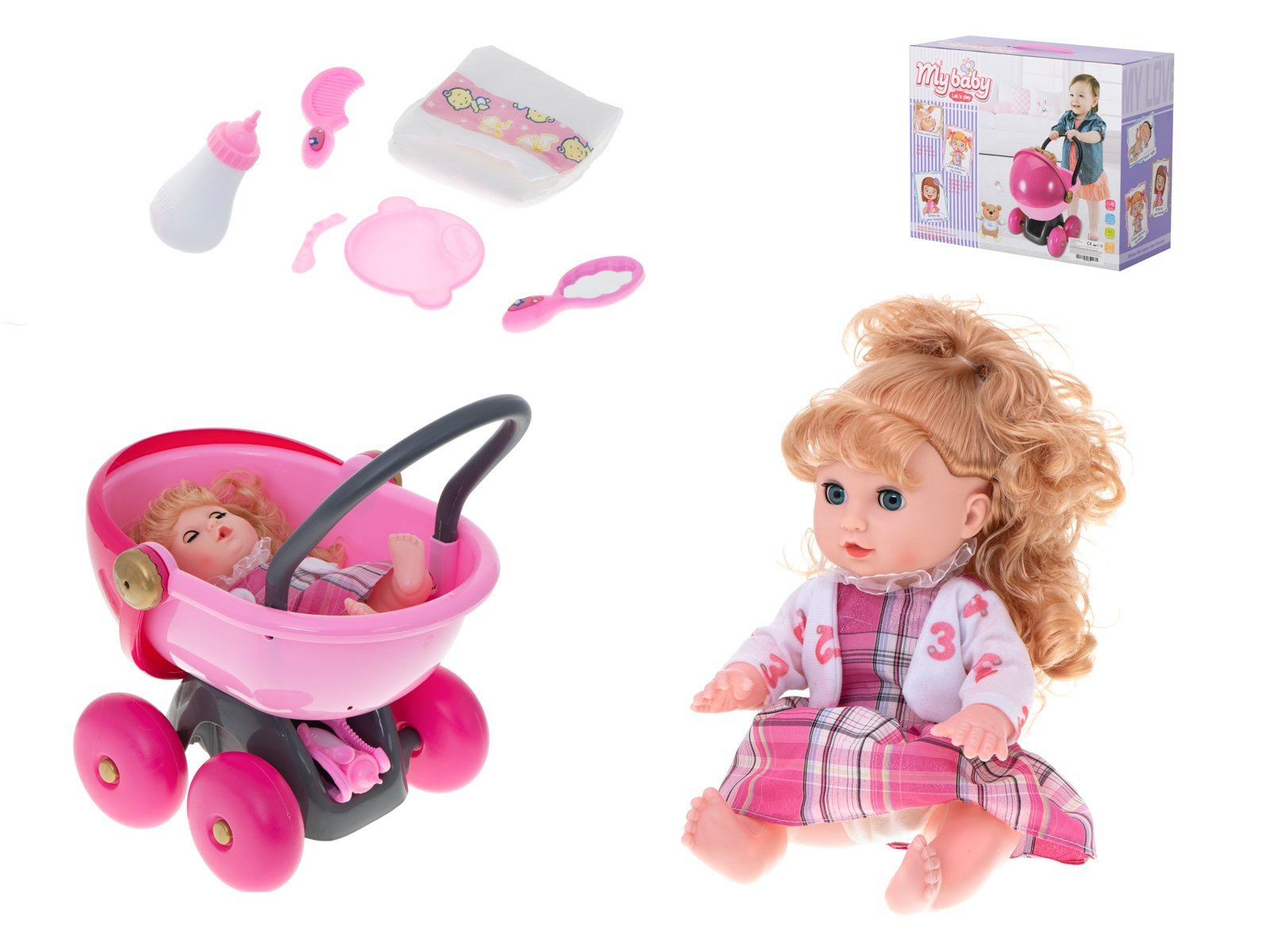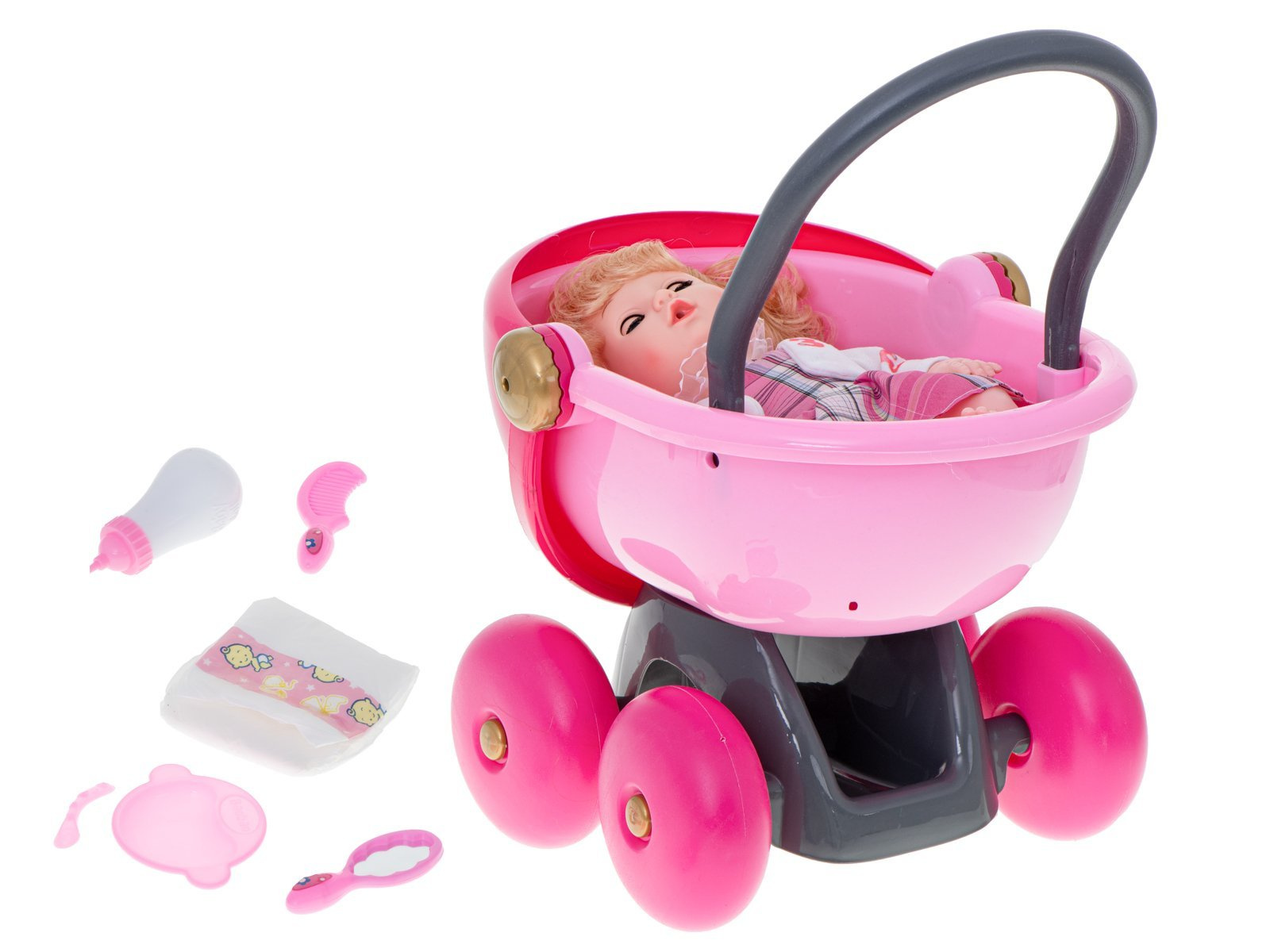 - Zestaw dla dziewczynki z lalką, wózkiem i akcesoriami