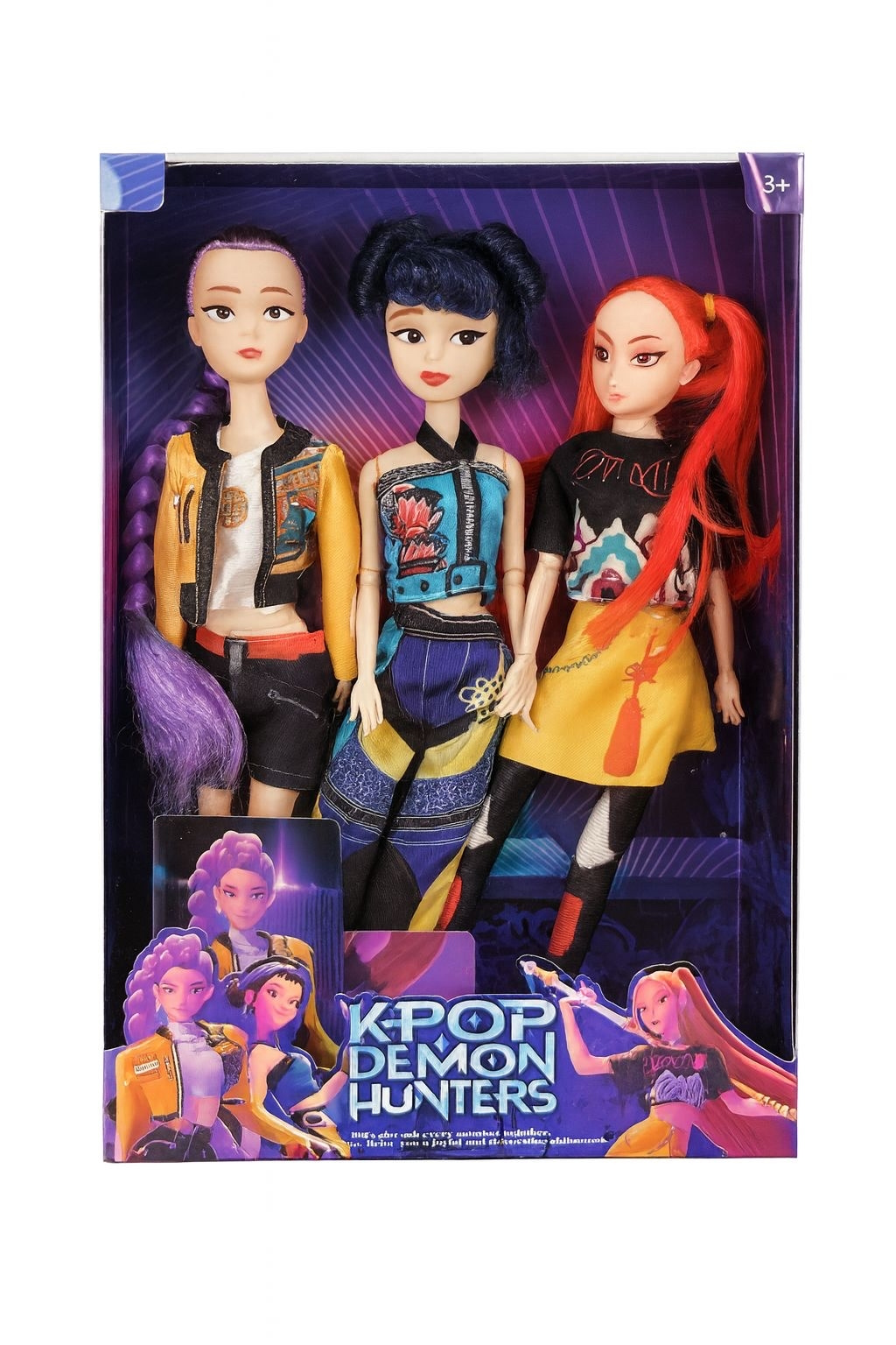 Zestaw lalek przedstawia Rumi, Zoey i Mire. Są to bohaterki filmu animowanego „K-popowe łowczynie demonów”. Jest to świetny wybór dla fanów tego filmu lub popkultury azjatyckiej i muzyki K-POP. Lalki pozwalają na wcielenie się w postać i zabawę jako ulubiona bohaterka. Zestaw ten jest idealnym pomysłem na prezent urodzinowy, świąteczny lub na inną wyjątkową okazję.DANE TECHNICZNE