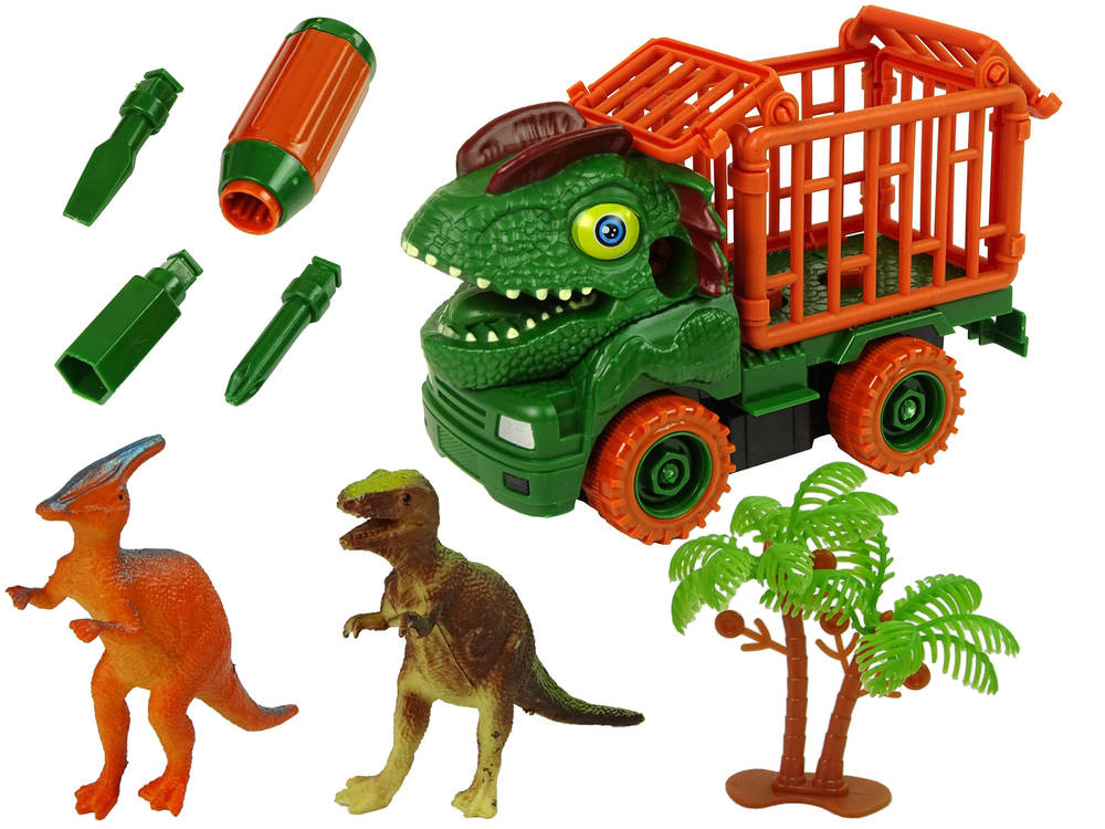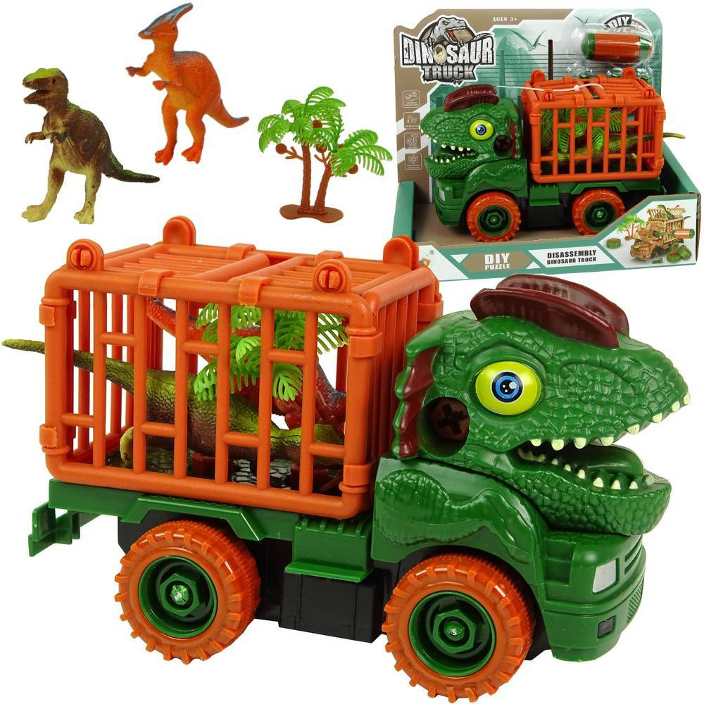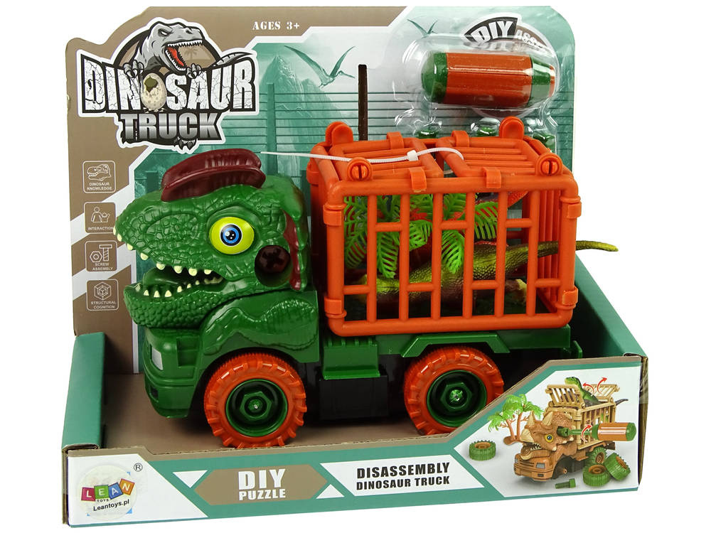 Transporter zielony dinozaur do rozkręcania majsterkowanie dla dzieci akcesoria 3w1