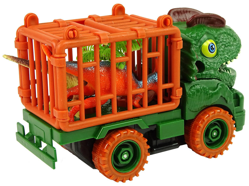 Dzieci od najmłodszych lat są zafascynowane wszelkimi pojazdami. Przedstawiona zabawka to połączenie samochodu, dinozaura oraz majsterkowania. Maska ciężarówki odwzorowuje wygląd prawdziwego dinozaura. Posiada on otwartą buzię z wyraźnymi zębami, duże oczy oraz grzebień. Transporter z wizerunkiem zielonego dinozaura sprawdzi się idealnie na prezent dla małego fana zarówno tych stworzeń, jak i pojazdów.ZIELONY DINOZAUR TRANSPORTER DO ROZKRĘCANIA