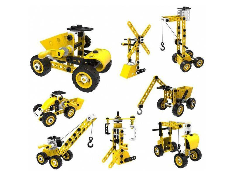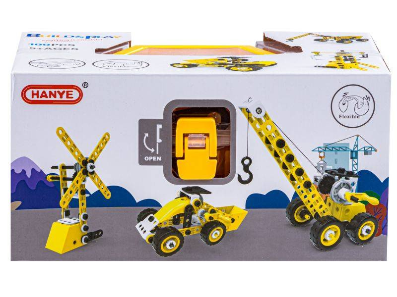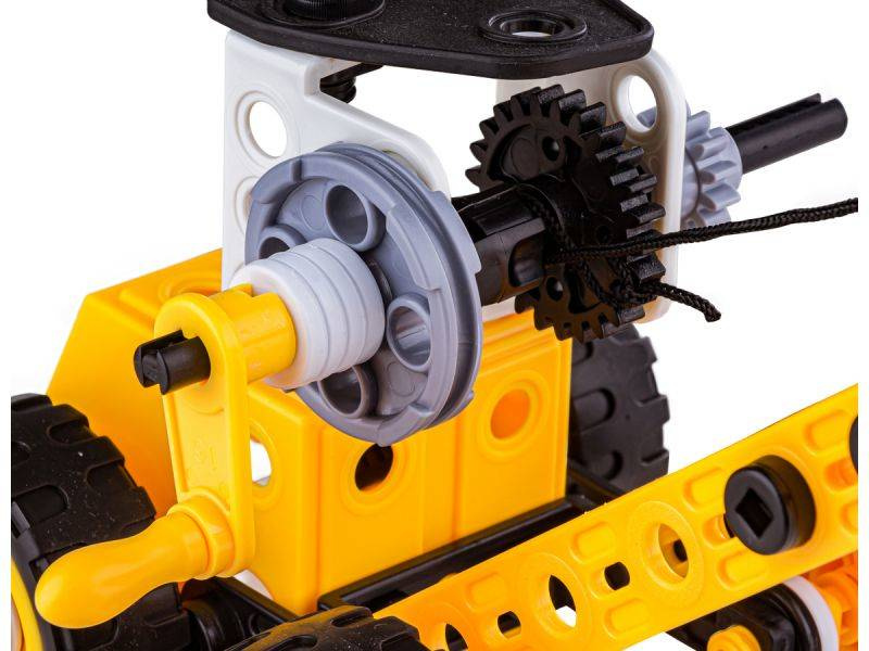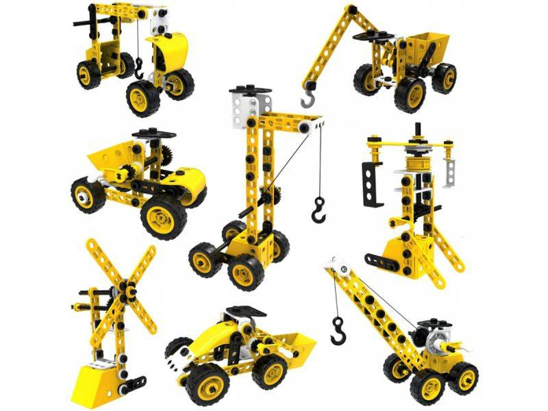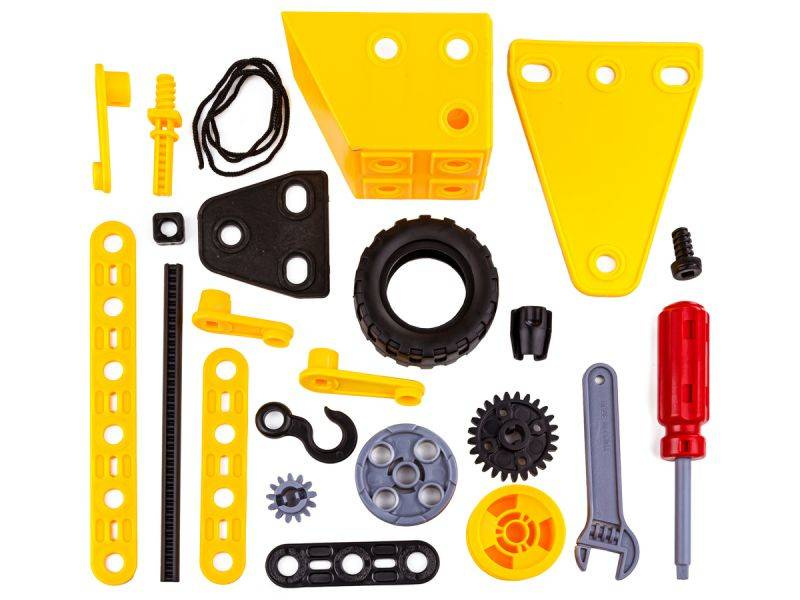 - Zestaw pozwoli na tworzenie przeróżnych konstrukcji, zależnych od wyobraźni dziecka. Posiada 100 elementów. Możliwe jest zbudowanie m.in. maszyn i pojazdów budowy. Zabawa rozwinie zdolności manualne oraz kreatywność.