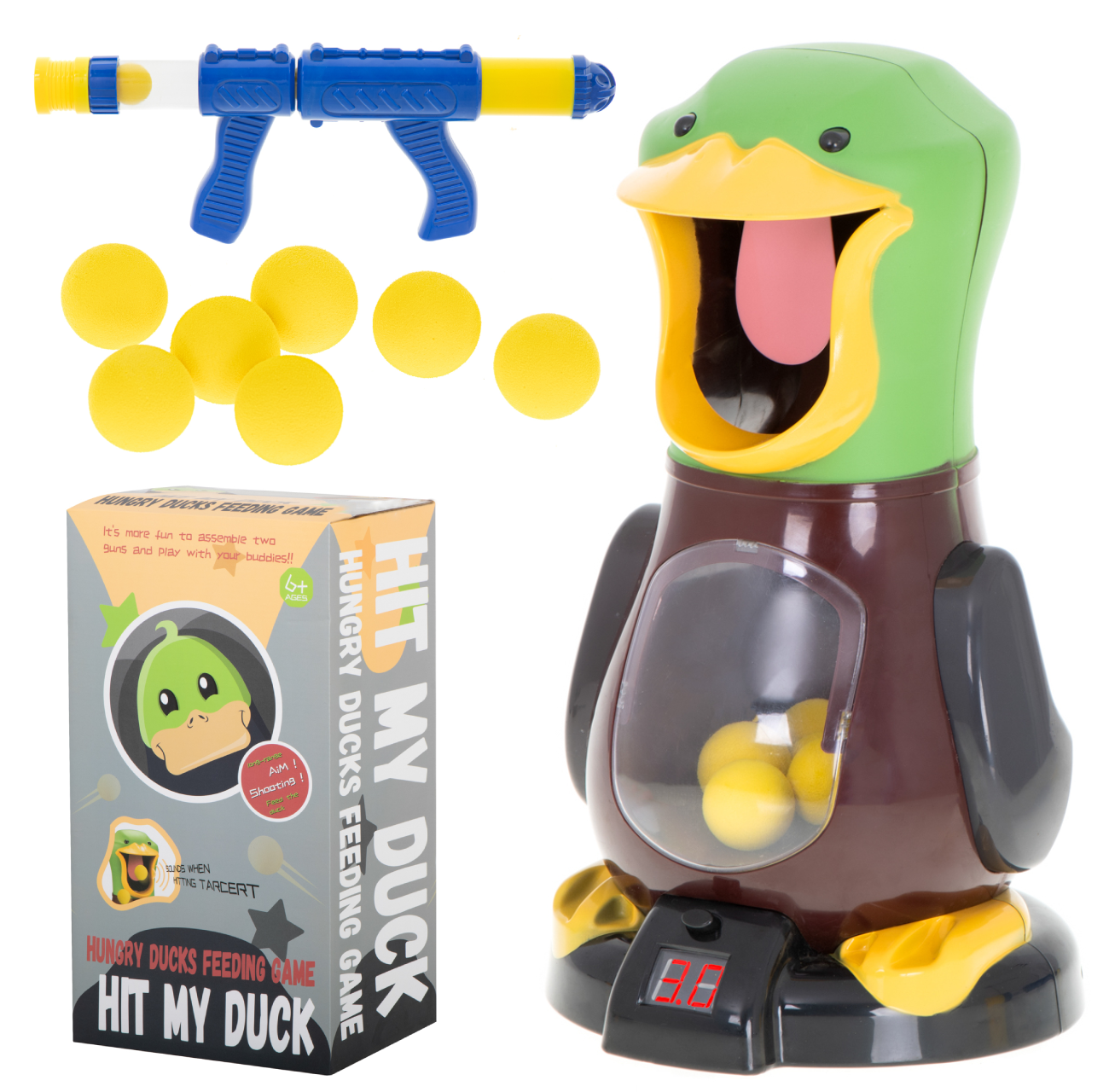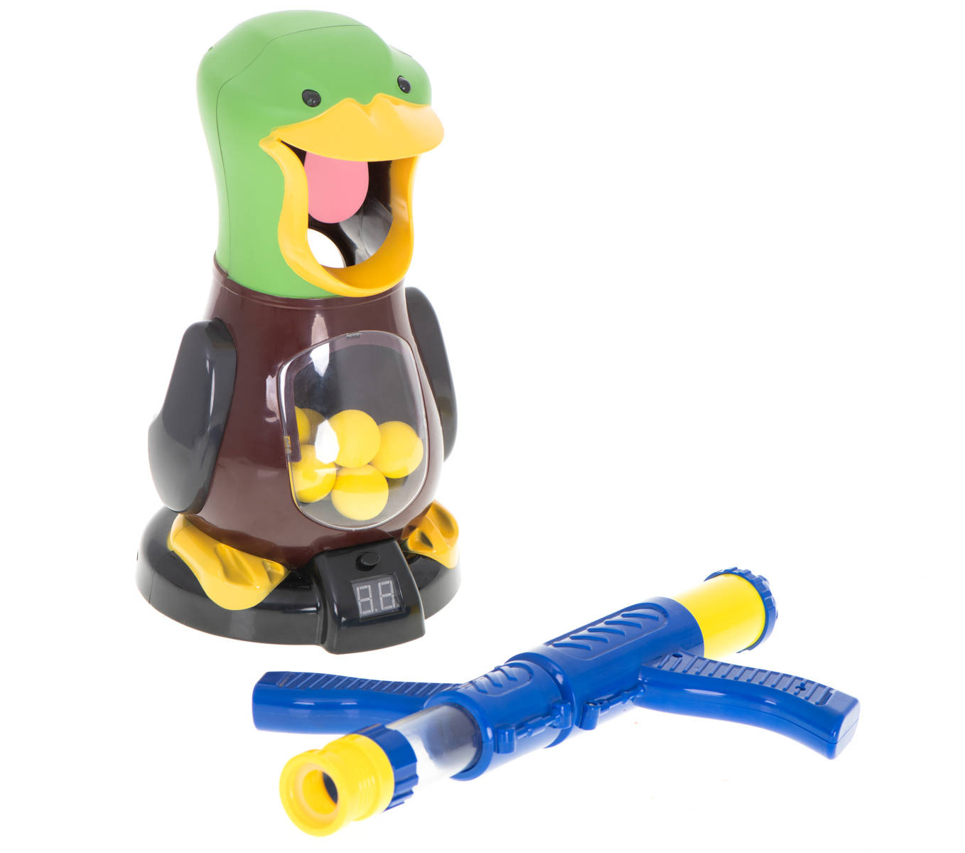 - Zabawna gra z pistoletem na kulki piankowe: strzelanie do kaczki. Gra uczy Twoje maluchy współzawodnictwa oraz przyczynia się do rozwoju więzi pomiędzy dziećmi.