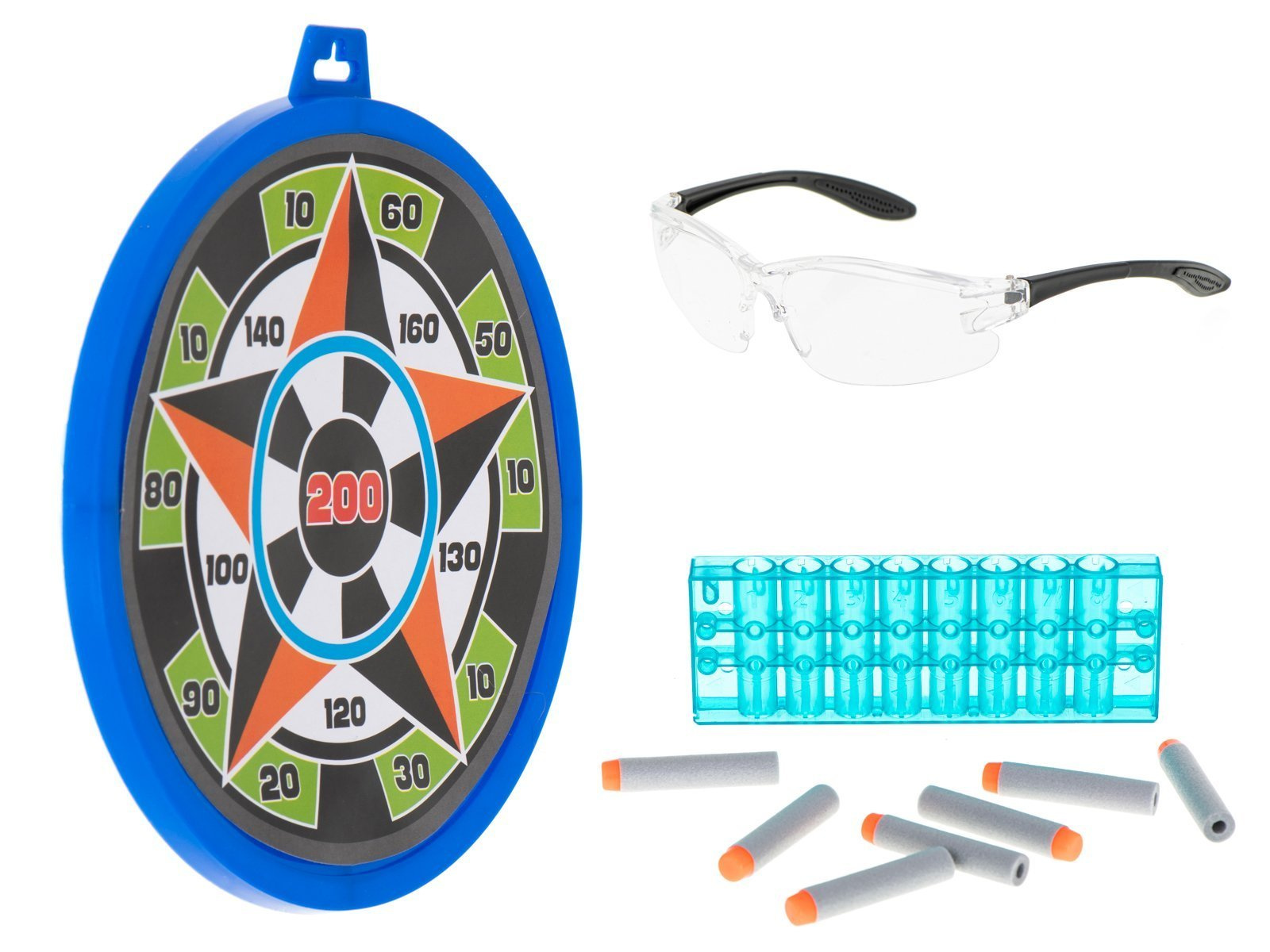 Zabawkowy karabin wyrzutnia naboi dla dzieci zestaw pistolet naboje tarcza gogle Storm Zone