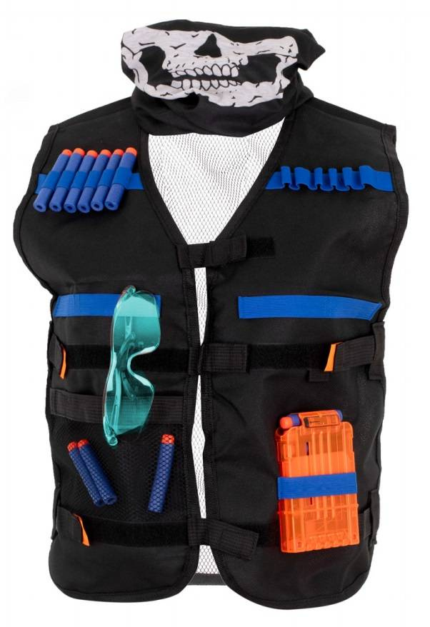 Chcąc uczestniczyć w bitwie na naboje piankowe, Twój maluch musi odpowiednio wyglądać. Kamizelka taktyczna z zestawem zabawkowej amunicji, okularami ochronnymi i bandaną nie tylko pozwoli wygrać każdą rozgrywkę, ale również sprawi, że Twój maluch będzie wyglądał niczym prawdziwy komandos! Kamizelka jest bardzo wygodna i lekka w noszeniu, jej tył wykonany został z przepuszczającej powietrze siateczki, zapobiegającej pocenie się podczas zabawy, a jej uniwersalny rozmiar sprawi, że będzie ona idealna dla każdego. Z kamizelką taktyczną wyposażoną w najróżniejsze akcesoria bojowe, żaden pojedynek nie będzie straszny Twoim dzieciom. Oprócz kamizelki, w zestawie otrzymujecie również 20 zabawkowych naboi/strzałek do pistoletów Nerf, magazynek na amunicję, opaskę na rękę, okulary ochronne oraz ciepłą bandankę na twarz. Gotowi na prawdziwą jatkę?