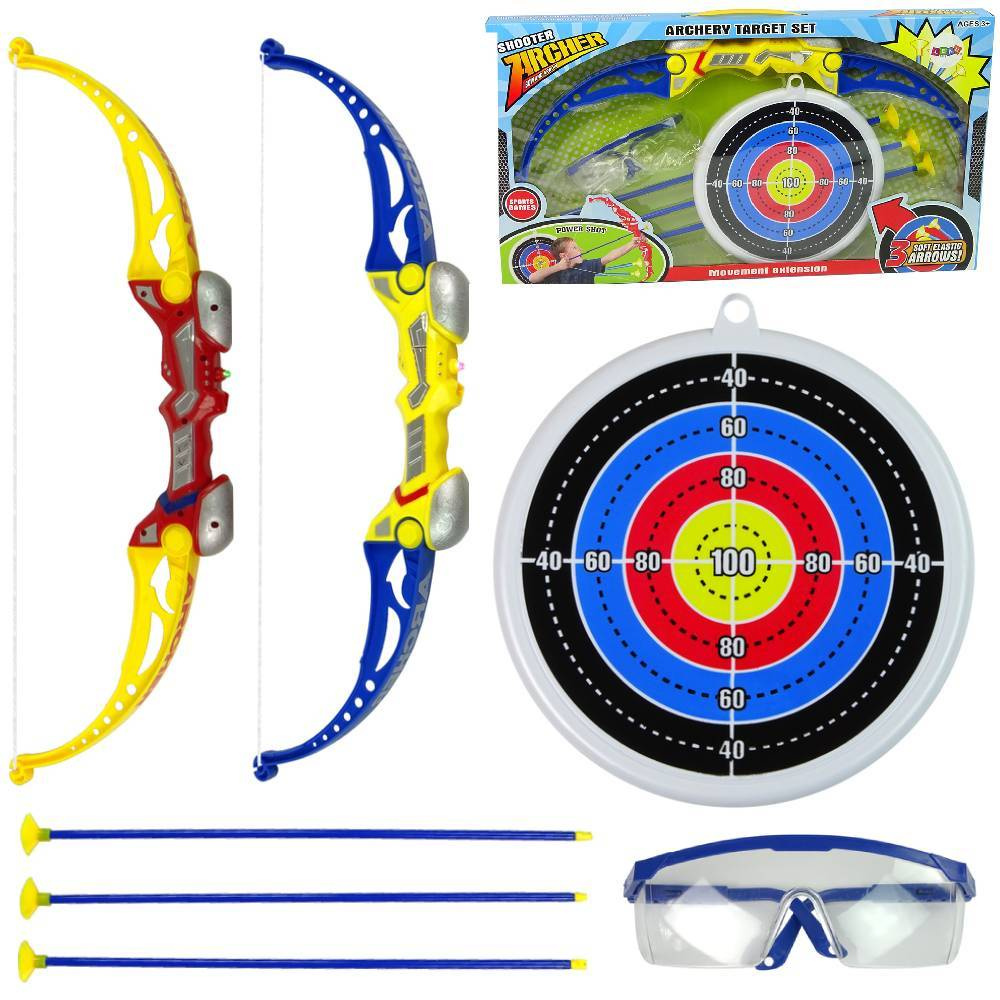 Zestaw strzelecki dla dzieci łuk ze strzałami tarczą i okularami