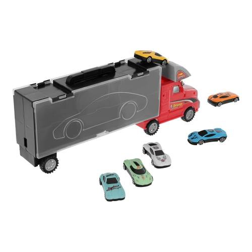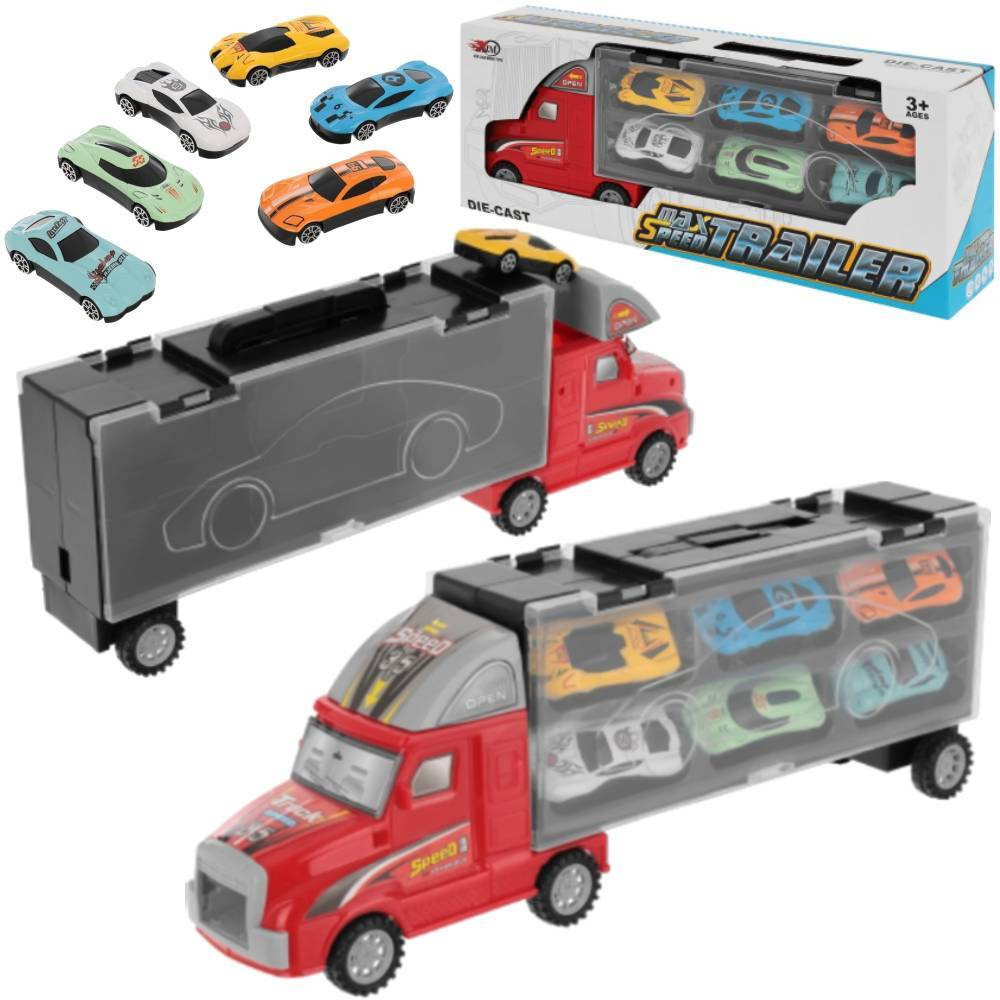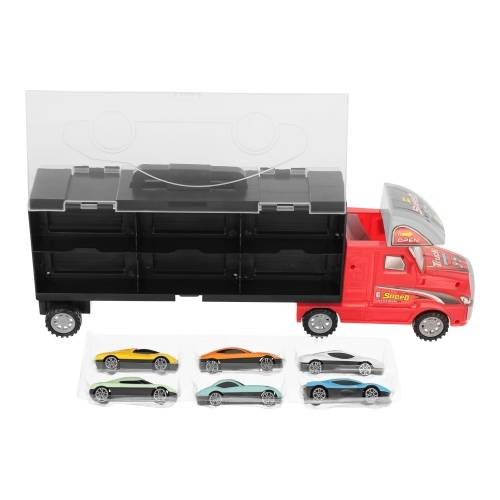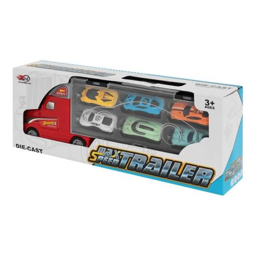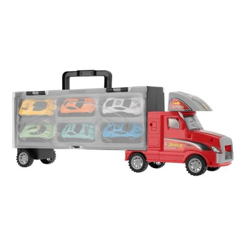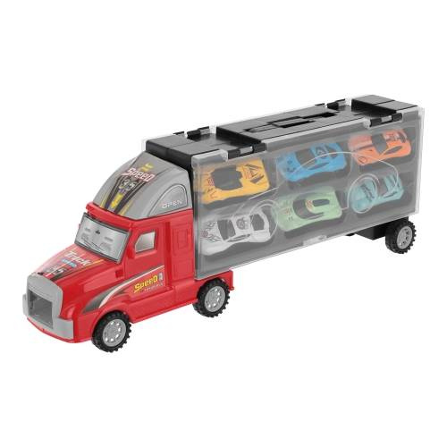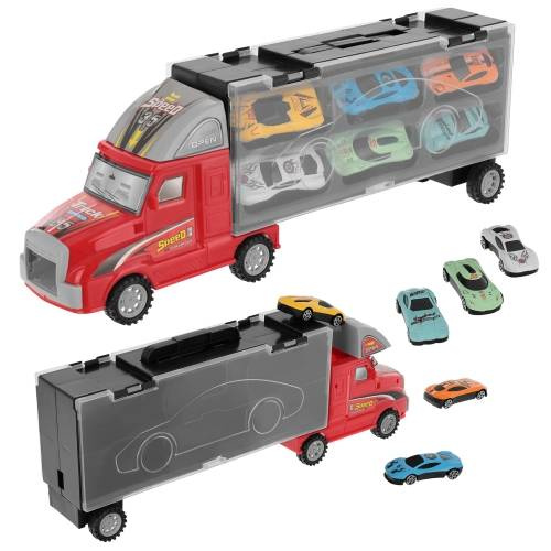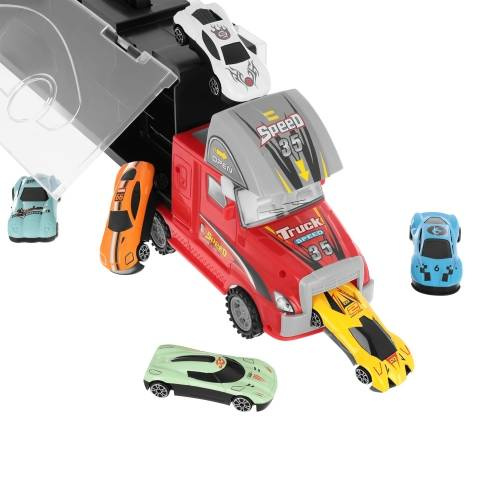 Ciężarówka zawiera transporter samochodzików, dzięki czemu każdy znajdzie swoje miejsce. W zestawie 6 kolorowych autek. Pojazd pełni również funkcję wyrzutni aut. Zestaw idealny na prezent dla małego fana motoryzacji. Dla dzieci od 3 lat.