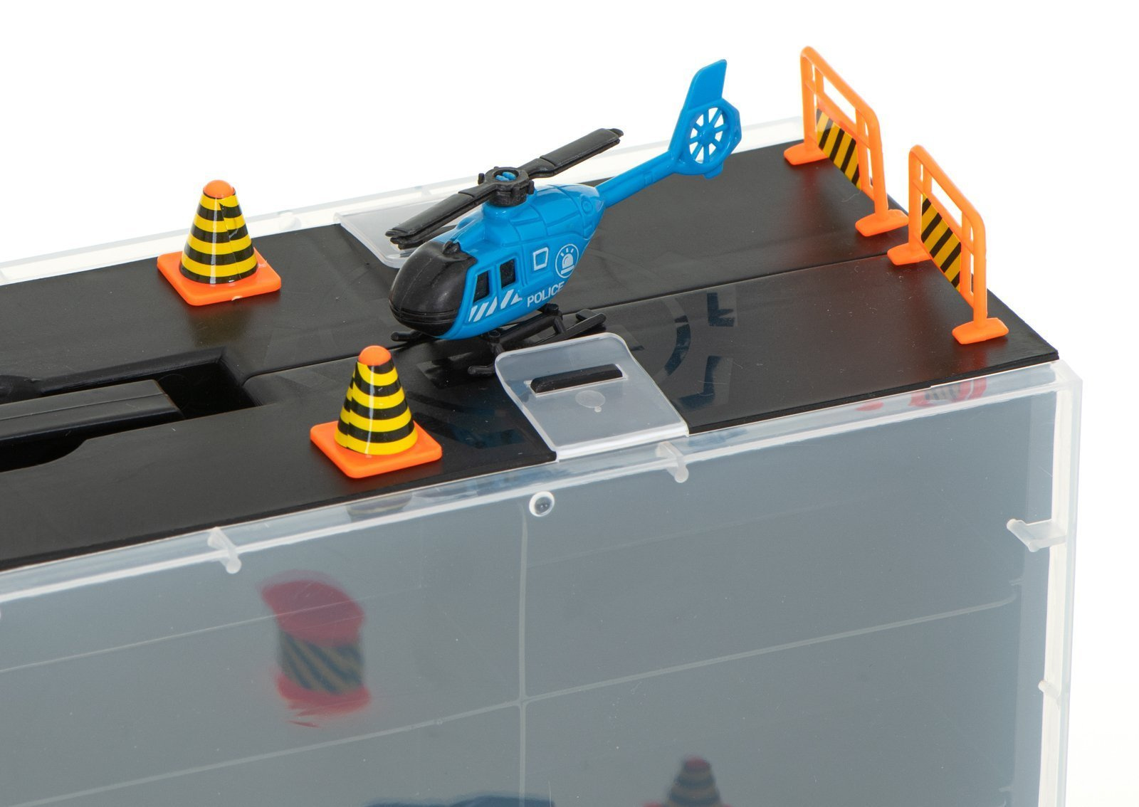 Duża ciężarówka transporter w zestawie z sześcioma samochodami policyjnymi zapewni mnóstwo zabawy Twoim dzieciom. Wszystkie elementy są szczegółowo wykonane przez co samochody wyglądają jak prawdziwe, a dzięki zastosowaniu najwyższej jakości materiałów, zabawy nie będzie końca. Duże koła ciężarówki poradzą sobie z każdą nawierzchnią – czy to z trawą, piaskiem czy żwirem. Żaden teren jej nie straszny! Dodatkowo, transporter posiada z przodu wyrzutnię aut – wystarczy wysunąć rampę i wpuścić autko przez otwór w dachu – obserwuj jak szybko auto wzbija się w powietrze! Dzięki zabawce, Twój maluch będzie miał szansę poznać zadania straży pożarnej i zrozumieć, na czym polega ich praca.DANE TECHNICZNE: