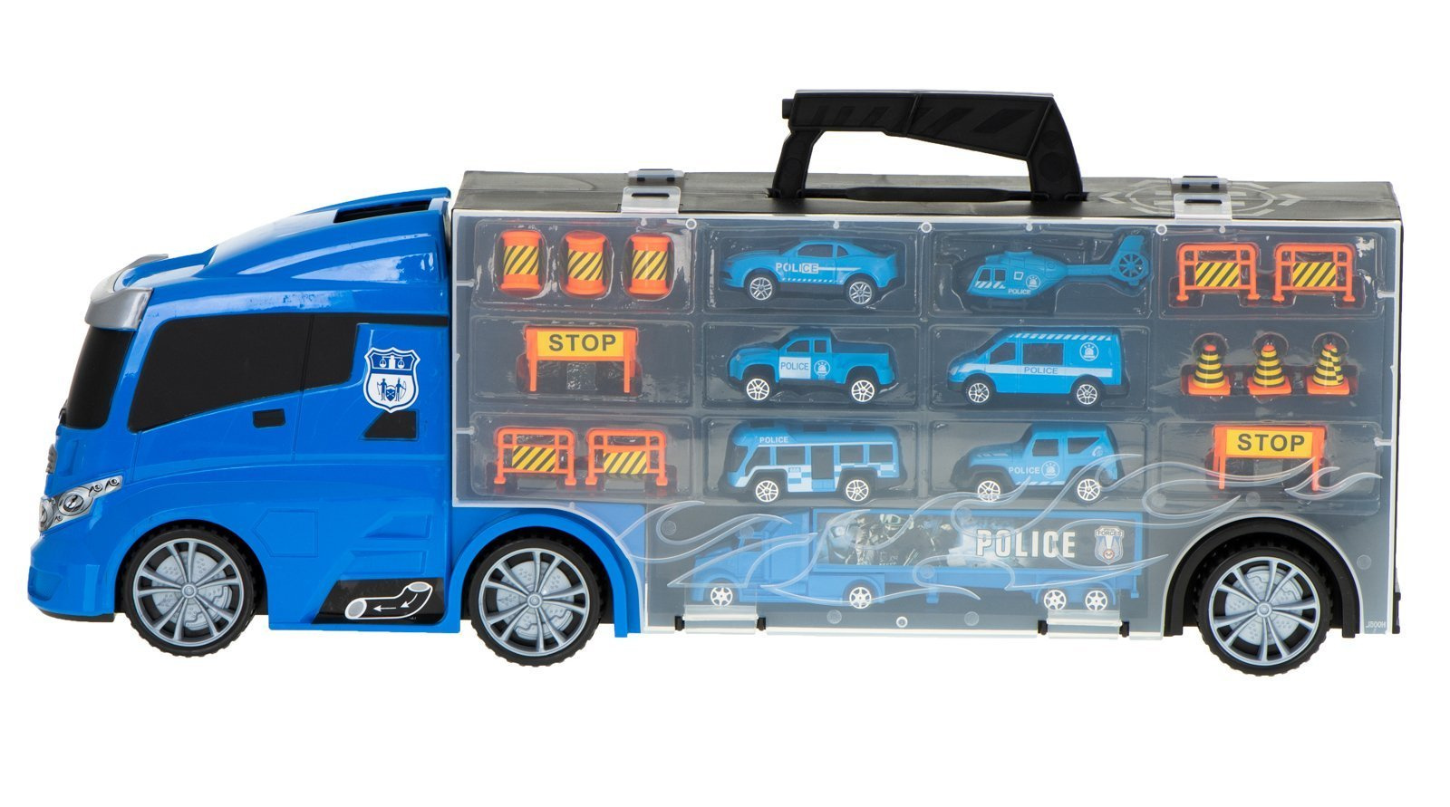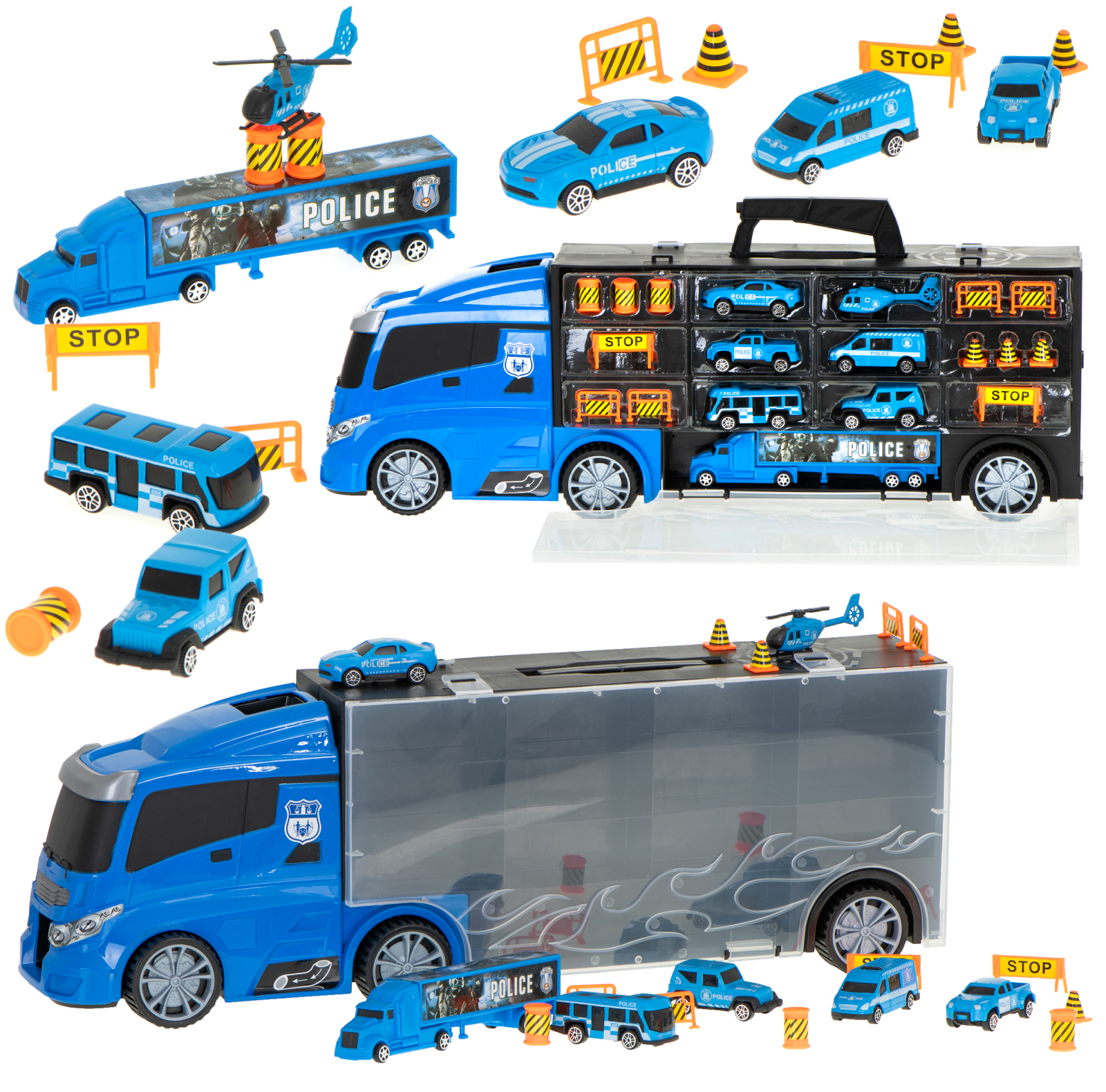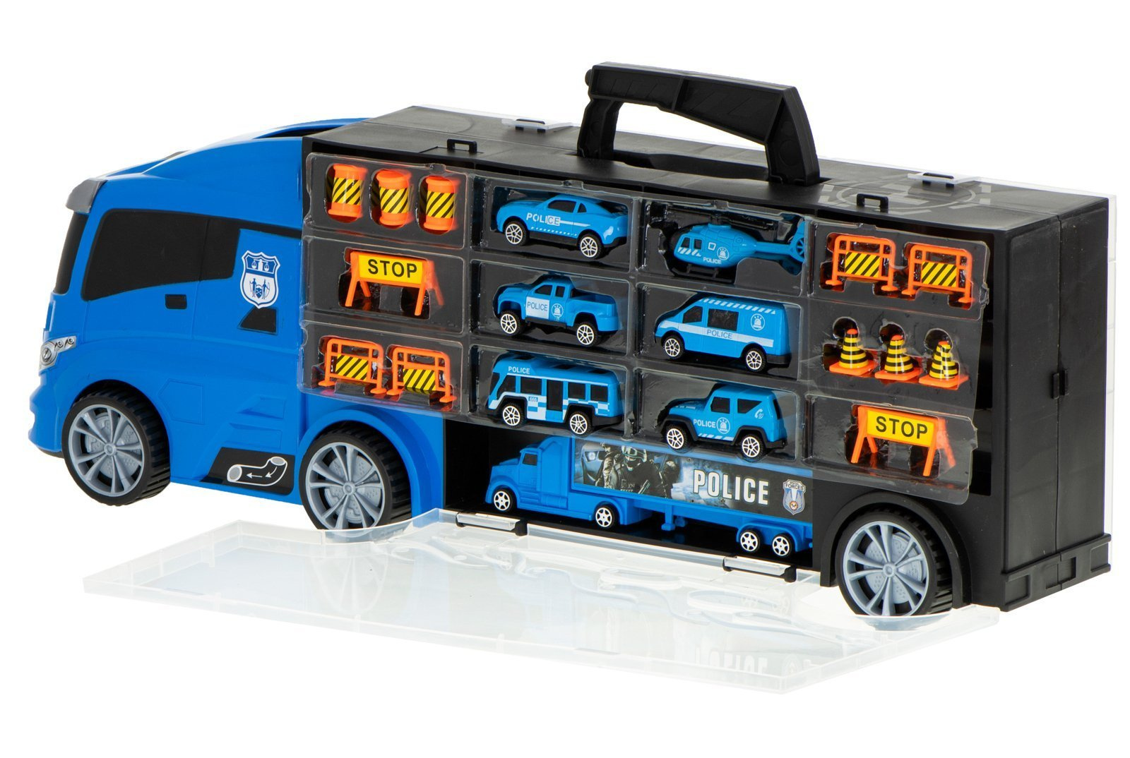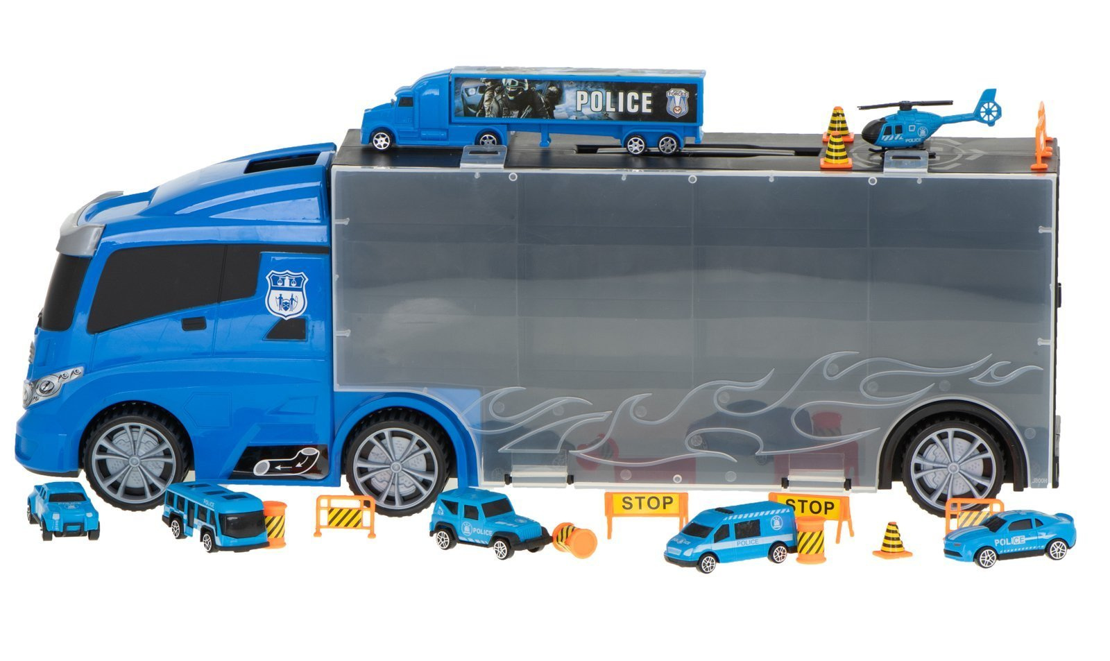 Duża ciężarówka Transporter Garaż dla samochodów z zestawem autek Policja dla dzieci