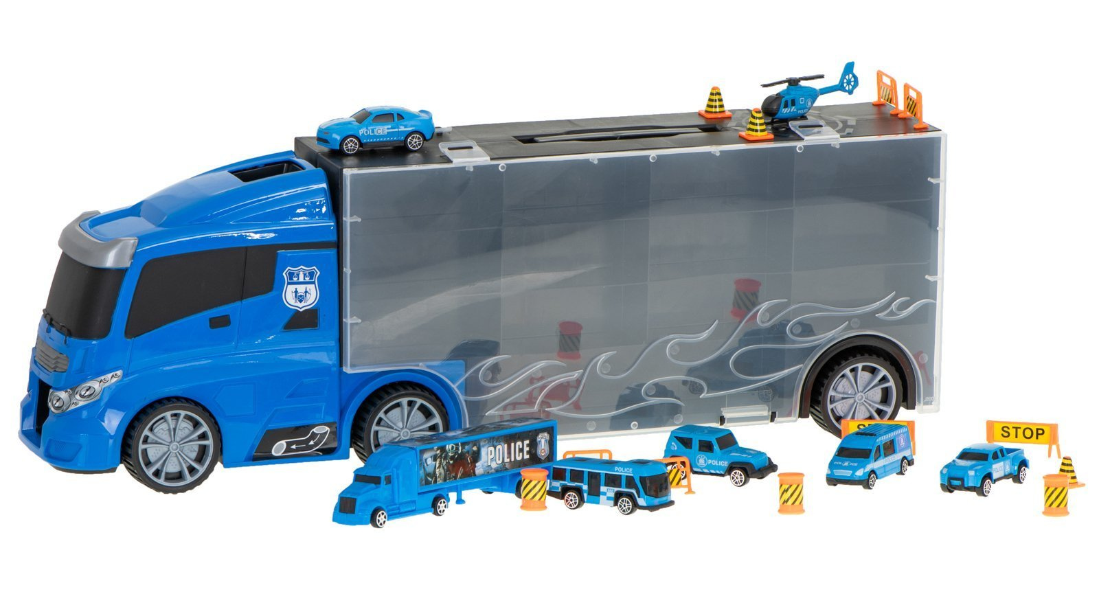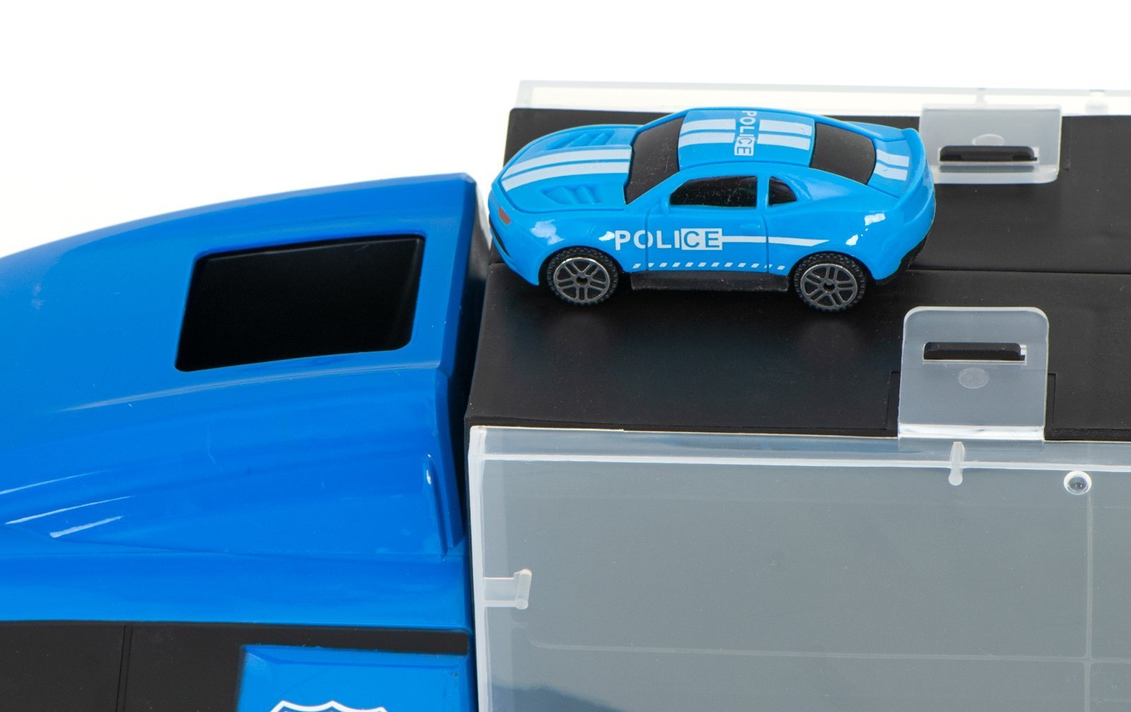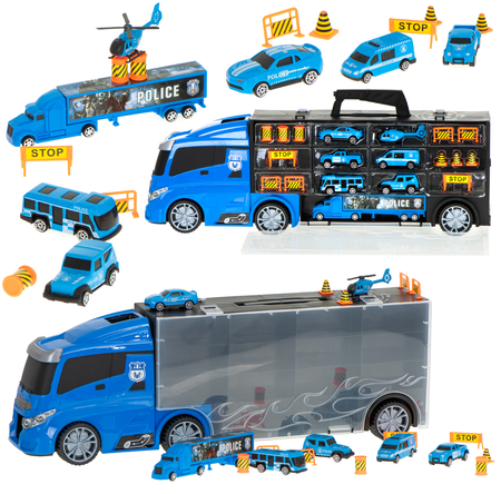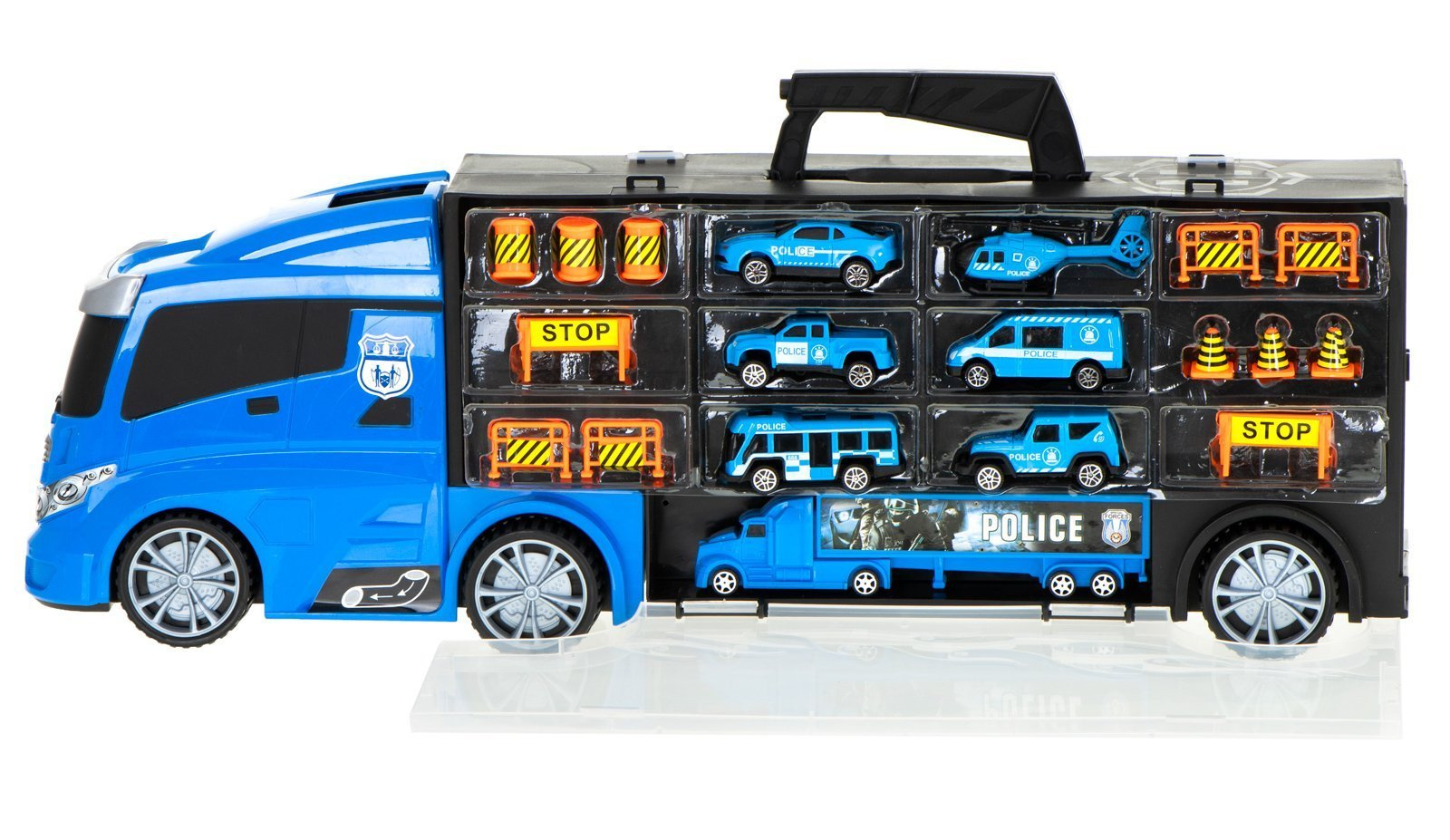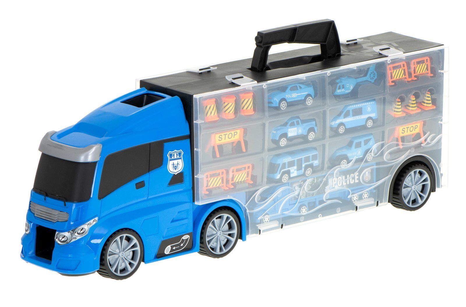Duża ciężarówka Transporter Garaż dla samochodów z zestawem autek Policja dla dzieci
