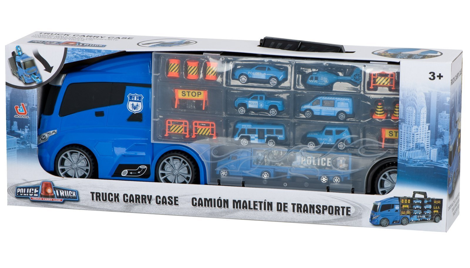 Opinie o Duża ciężarówka Transporter Garaż dla samochodów z zestawem autek Policja dla dzieci