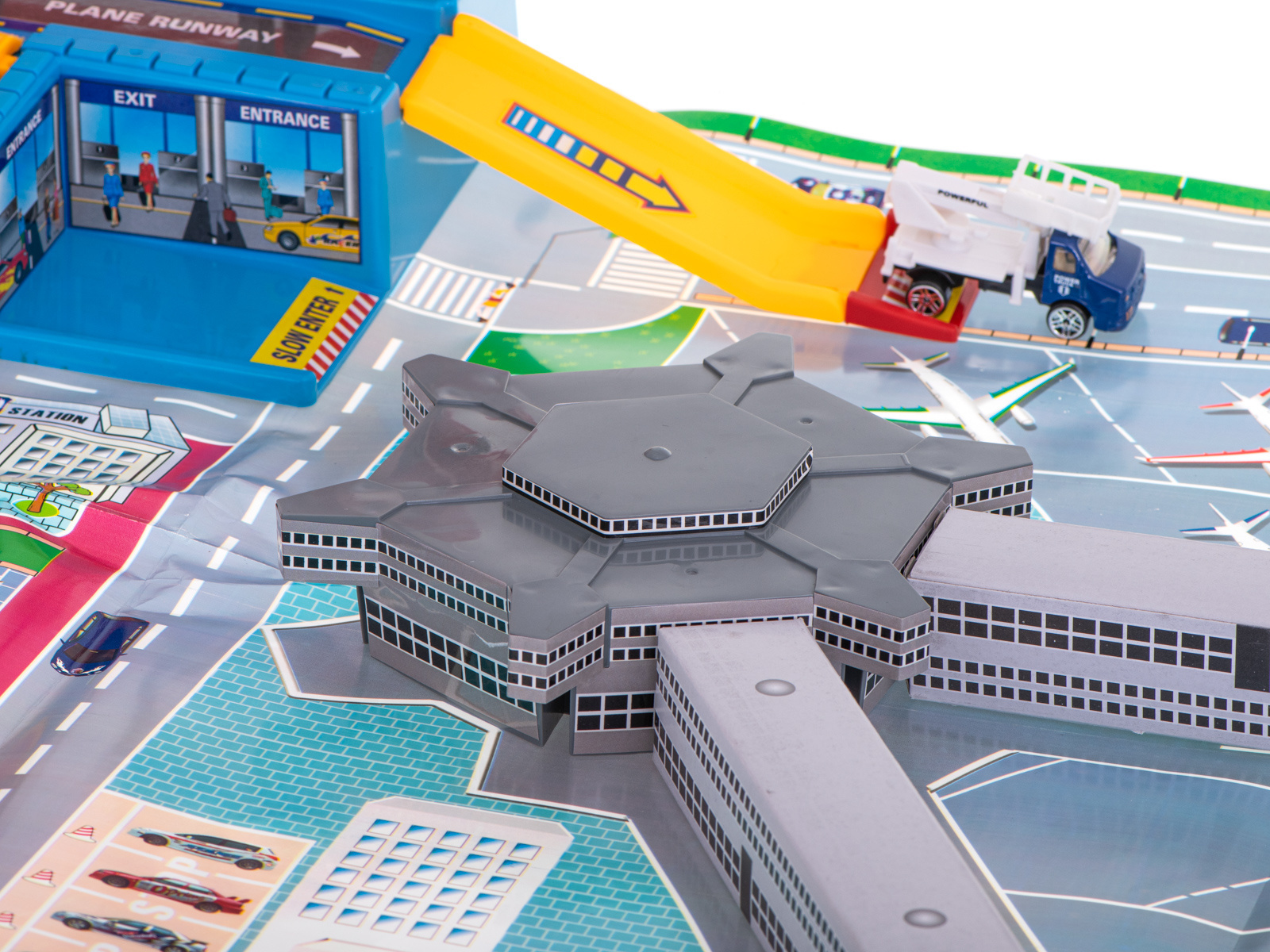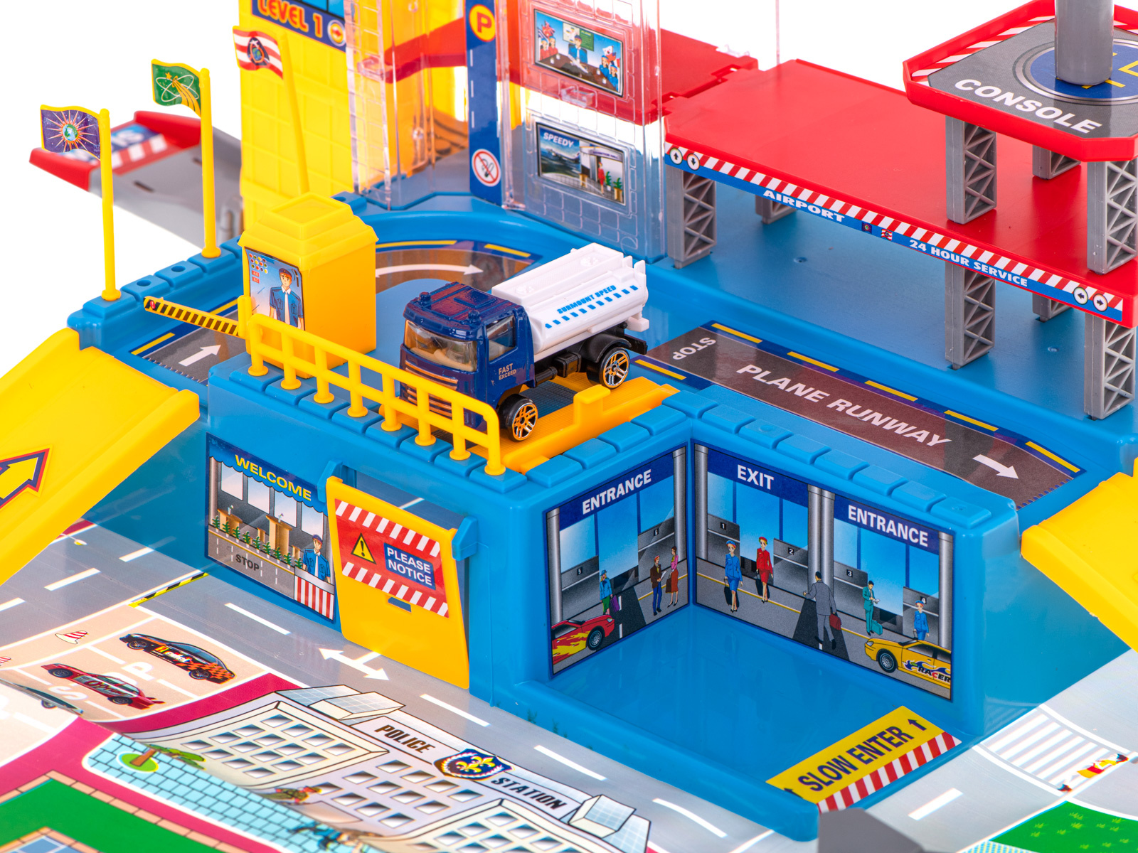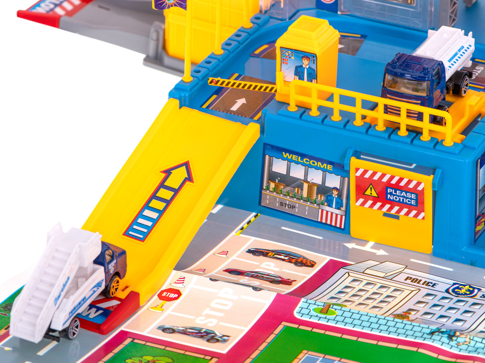 Duży parking z matą Lotnisko Samolot dla dzieci Zestaw pojazdów Ciężarówki 70 elementów