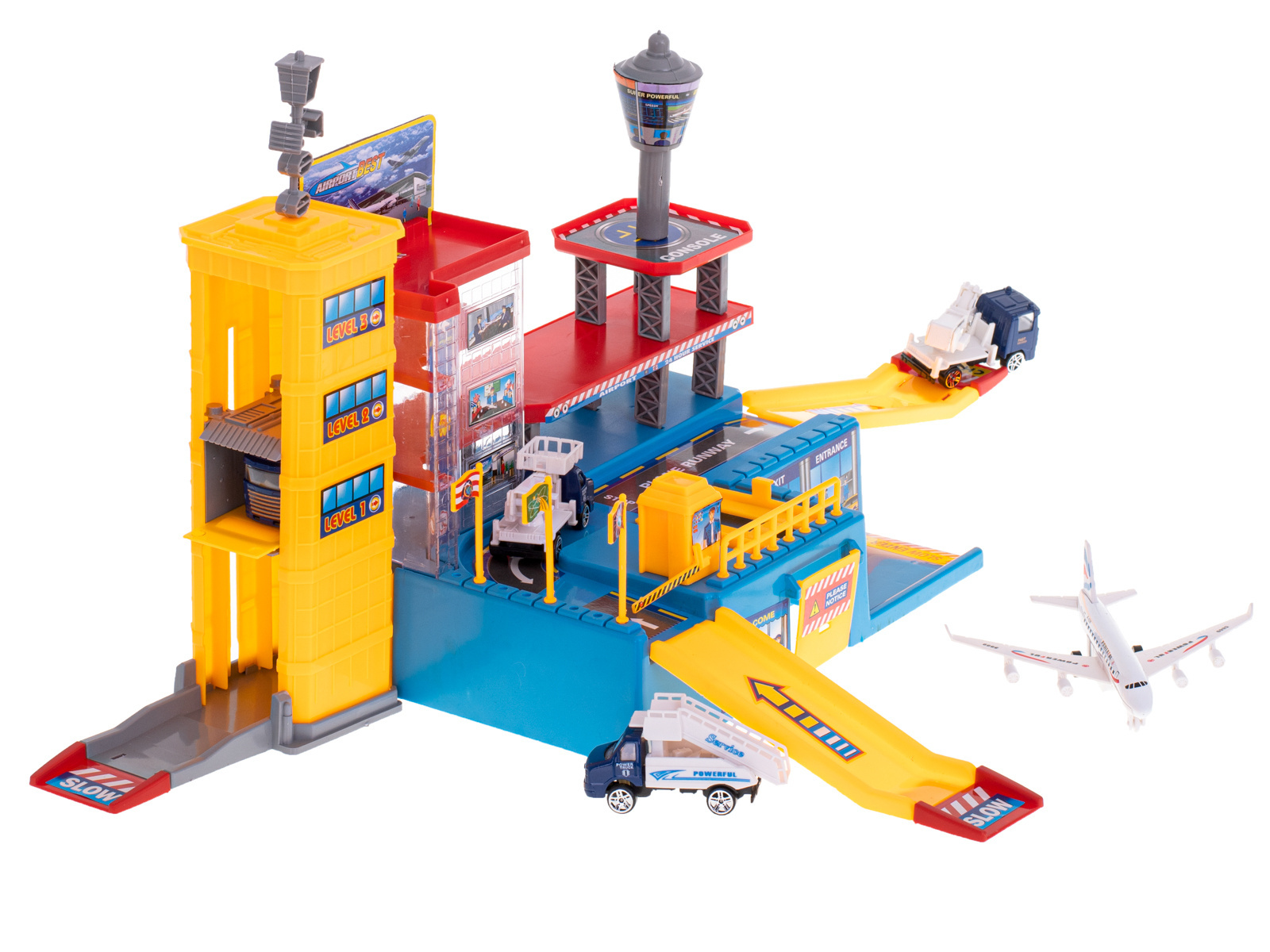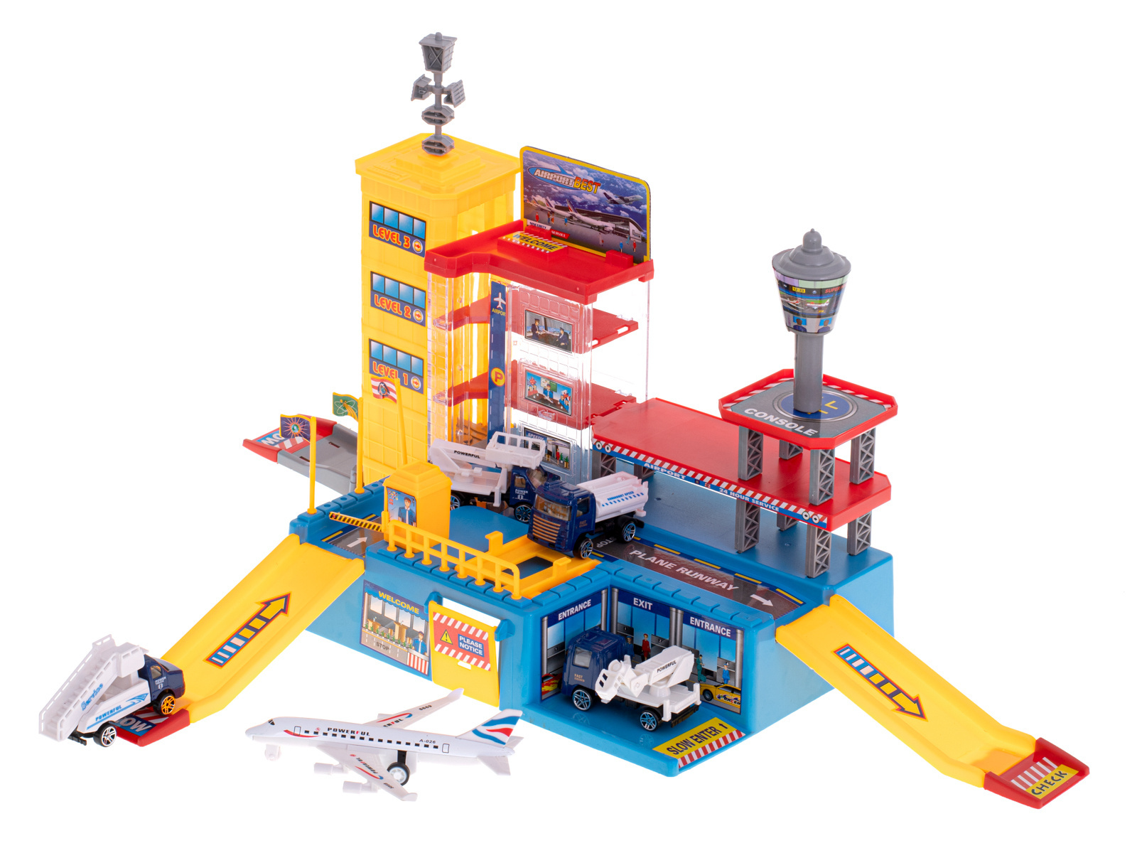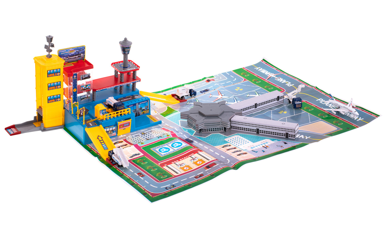 - Duży zestaw z parkingiem imitującym port lotniczy wraz z samolotem i zestawem pojazdów to prawdziwy must have dla każdego małego fana podniebnych maszyn. Zabawka wpływa na kształtowanie pozytywnego rozwoju Twojego dziecka.