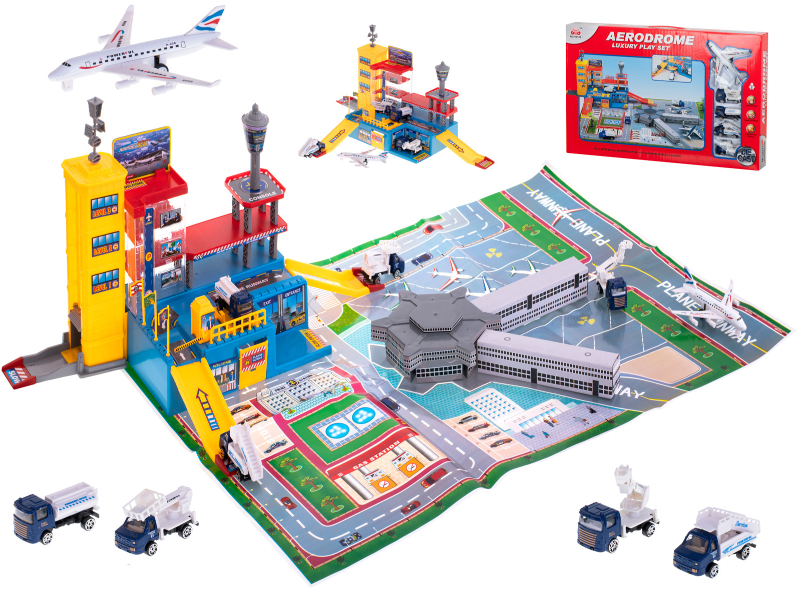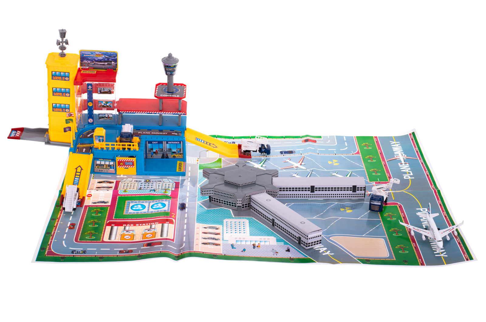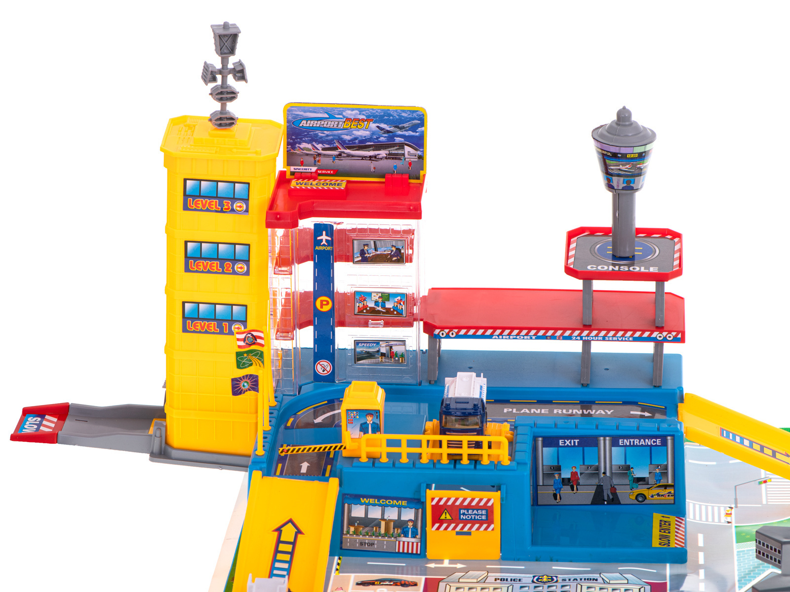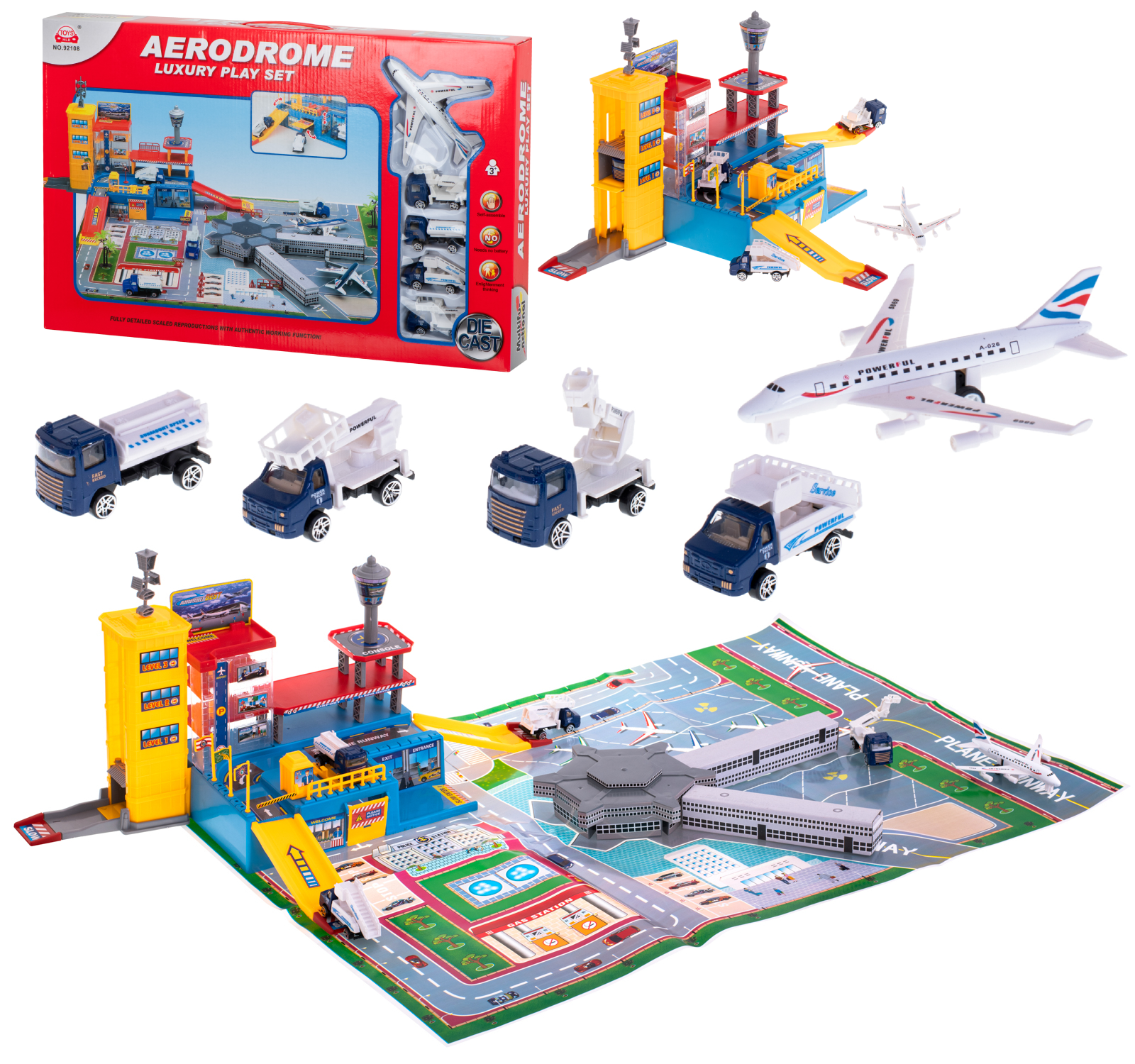 - Duży zestaw z parkingiem imitującym port lotniczy wraz z samolotem i zestawem pojazdów to prawdziwy must have dla każdego małego fana podniebnych maszyn. Zabawka wpływa na kształtowanie pozytywnego rozwoju Twojego dziecka.