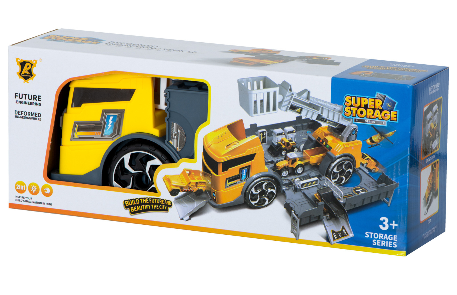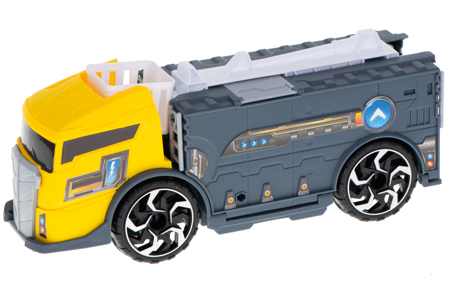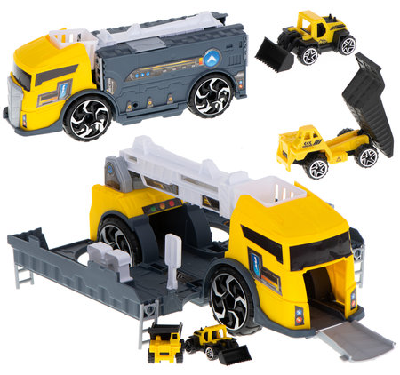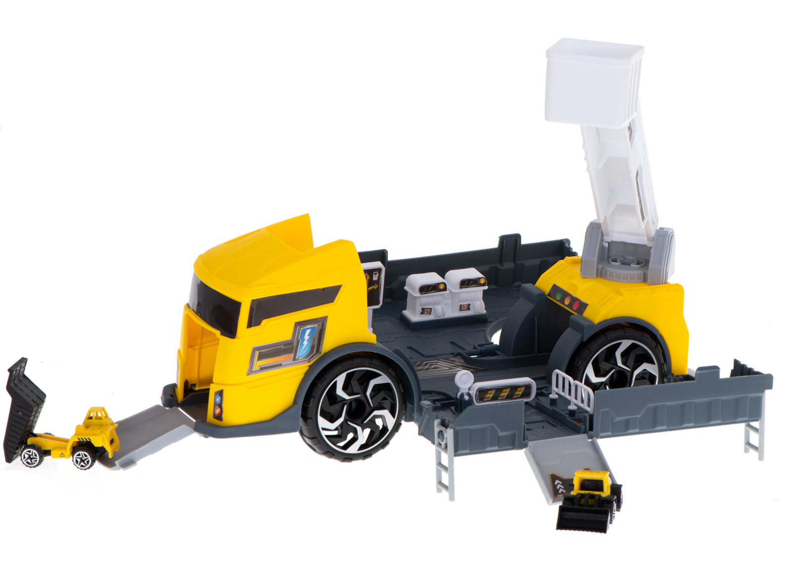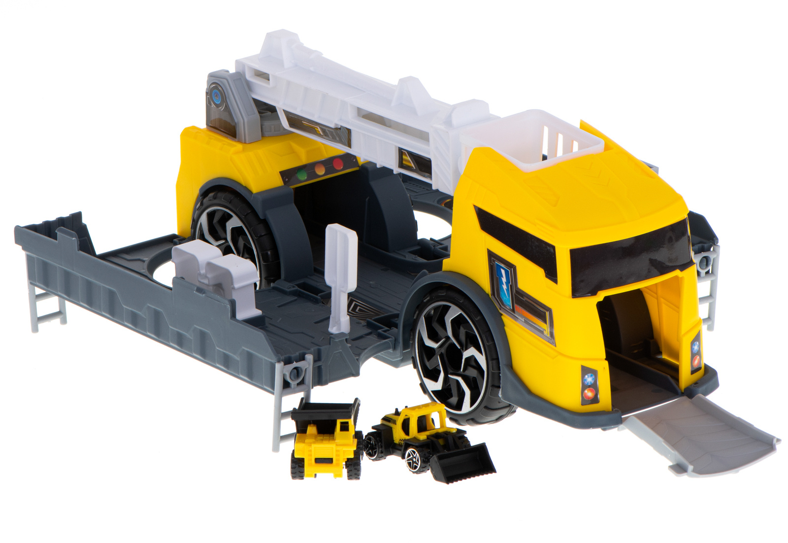 Duża ciężarówka transporter w zestawie z 2 samochodami ciężarowymi zapewni mnóstwo zabawy Twoim dzieciom. Wszystkie elementy są szczegółowo wykonane przez co samochody wyglądają jak prawdziwe, a dzięki zastosowaniu najwyższej jakości materiałów, zabawy nie będzie końca. Duże koła ciężarówki poradzą sobie z każdą nawierzchnią – czy to z trawą, piaskiem czy żwirem. Żaden teren jej nie straszny! Dodatkowo, transporter posiada rampy z przodu i z tyłu, po których samochody mogą wjeżdżać i wyjeżdżać z ciężarówki! Dzięki zabawce, Twój maluch będzie miał szansę zobaczyć na czym polega praca przewoźników materiałów ciężkich.DANE TECHNICZNE:
