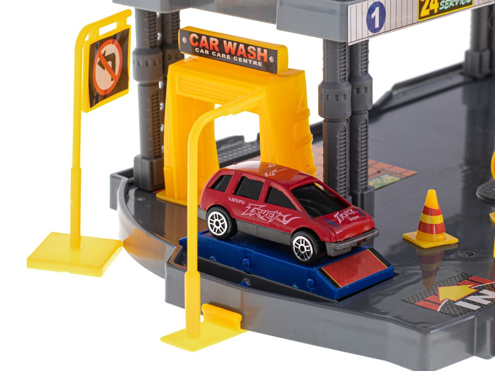 Duży zestaw Parking Garaż 4 poziomowy z windą, myjnią i stacją benzynową 6 samochodów