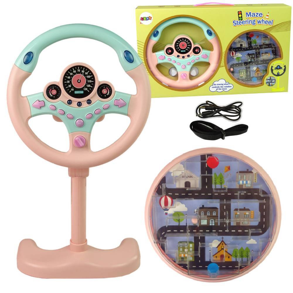 Interaktywna zabawkowa kierownica dla dzieci różowa labirynt światło dźwięk
